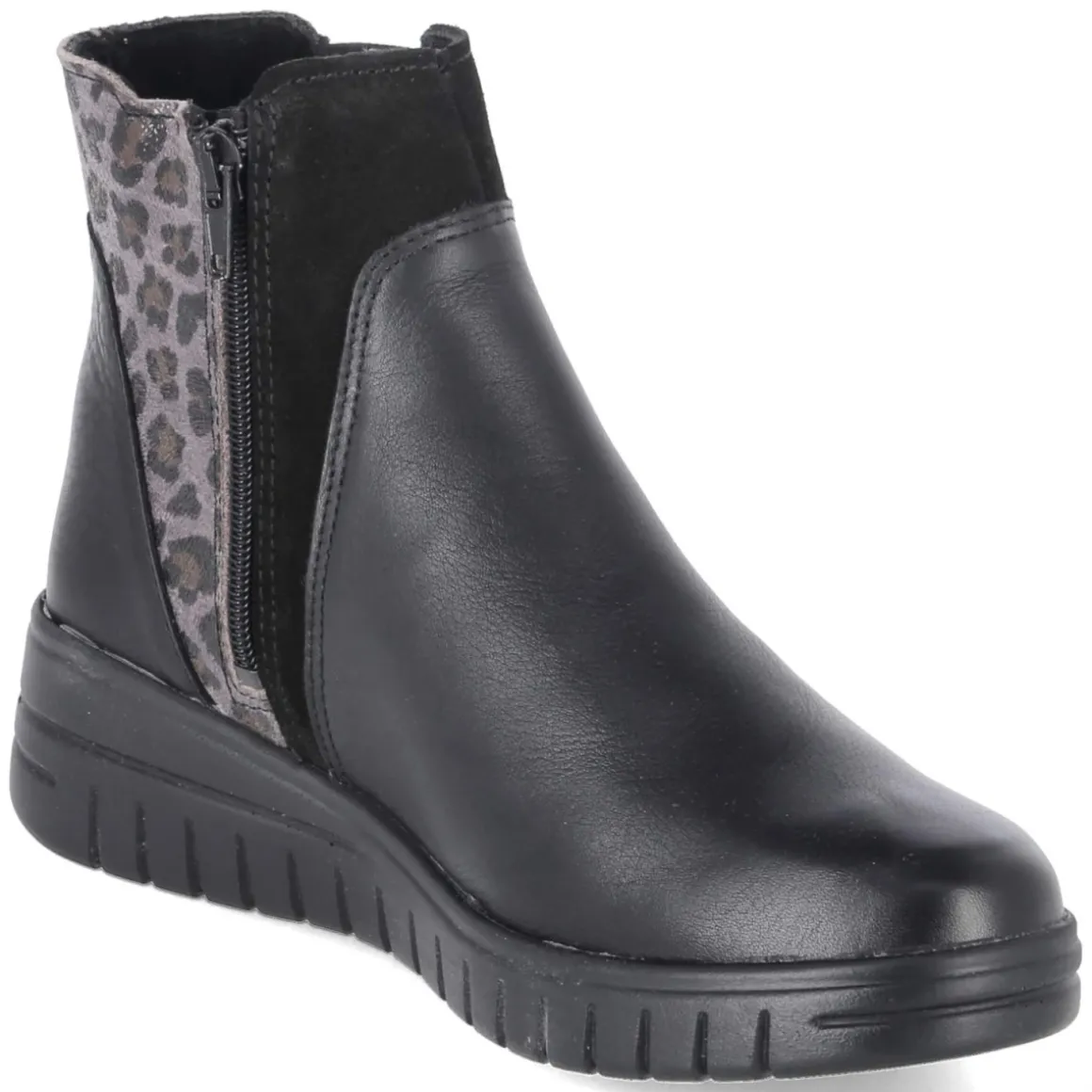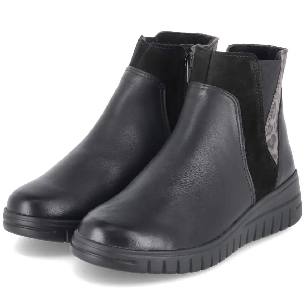 Die Stiefeletten ISLA 05 von Beliana vereinen klare Linien mit funktionalem Komfort. Schwarzes, langlebiges Echtleder und eine runde Schuhspitze schaffen eine zeitlose Silhouette, während das leichte Futter an kühlen Tagen angenehm wärmt. Der praktische Reißverschluss sorgt für einen bequemen Einstieg, unterstützt durch einen Elastikeinsatz am Schaft für passgenauen Halt. Ein herausnehmbares Fußbett eröffnet Spielraum für eigene Einlagen, die sehr flexible, rutschfeste Laufsohle begleitet trittsicher durch den Tag. Stabilität liefert der verstärkte Fersenbereich, ein dezent gemusterter hinterer Schaftteil setzt einen eleganten Akzent. Das Modell fällt größengetreu aus und zeigt sich citytauglich wie bürofein. Modetipp: Zu Straight-Leg-Jeans und einem langen Wollmantel wirkt das matte Leder besonders edel, eine strukturierte Strumpfhose unter Midirock betont das dezente Schaftmuster.