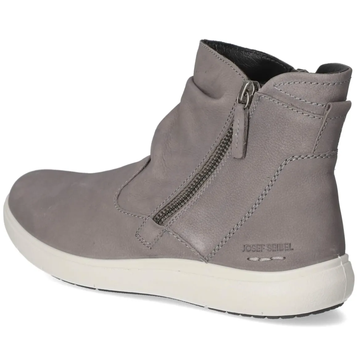Die Stiefeletten MEGAN 12 von Josef Seibel verbinden in dezentem Grau puristische Linien mit durchdachter Funktion. Das Obermaterial aus Glattleder punktet als atmungsaktives Echtleder, die runde Spitze sorgt für entspannten Zehenraum. Praktische Reißverschlüsse ermöglichen ein zügiges An- und Ausziehen, während der verstärkte Fersen- und Zehenbereich verlässlichen Halt gibt. Eine flexible Laufsohle unterstützt natürliche Abrollbewegungen im Alltag. Das komfortable Wechselfußbett lässt sich gegen eigene Einlagen tauschen, die pflegeleichte Synthetik-Decksohle ergänzt den angenehmen Tragekomfort. Leichte Raffung am Schaft verleiht dem cleanen Design einen soften Twist. Der Größenausfall entspricht der üblichen Größe. Modetipp: Zur grauen Nuance passen Cropped-Jeans und ein cremefarbener Strickpullover ebenso wie ein Midikleid in Beerentönen und Wollmantel – Ton-in-Ton mit silbernen Accessoires wirkt der Look besonders modern.