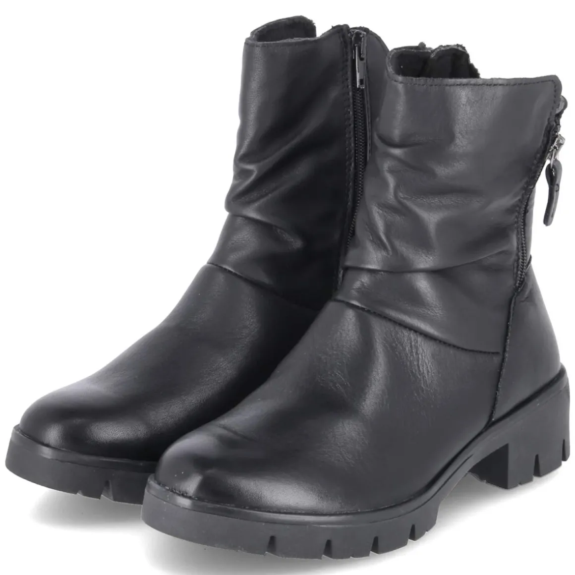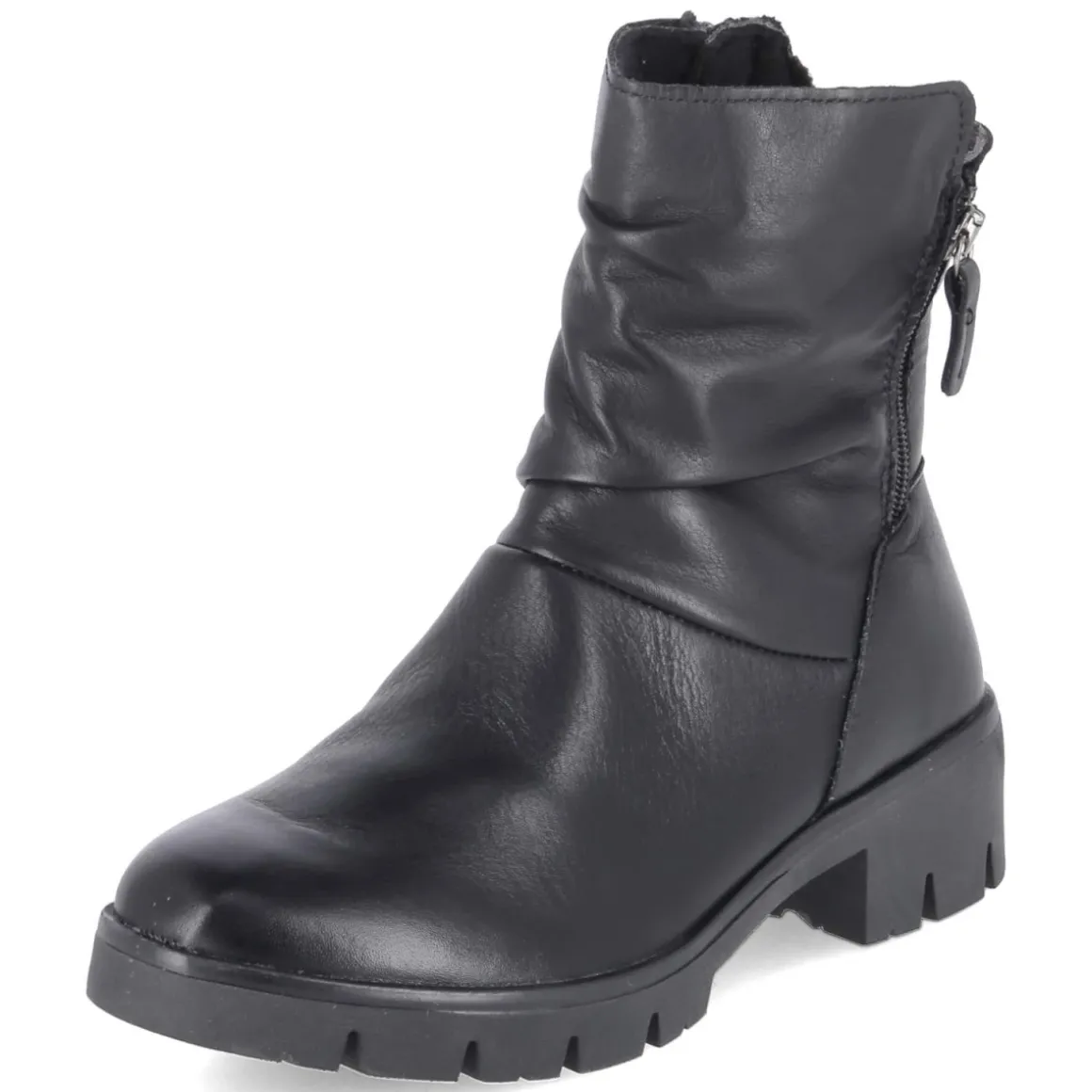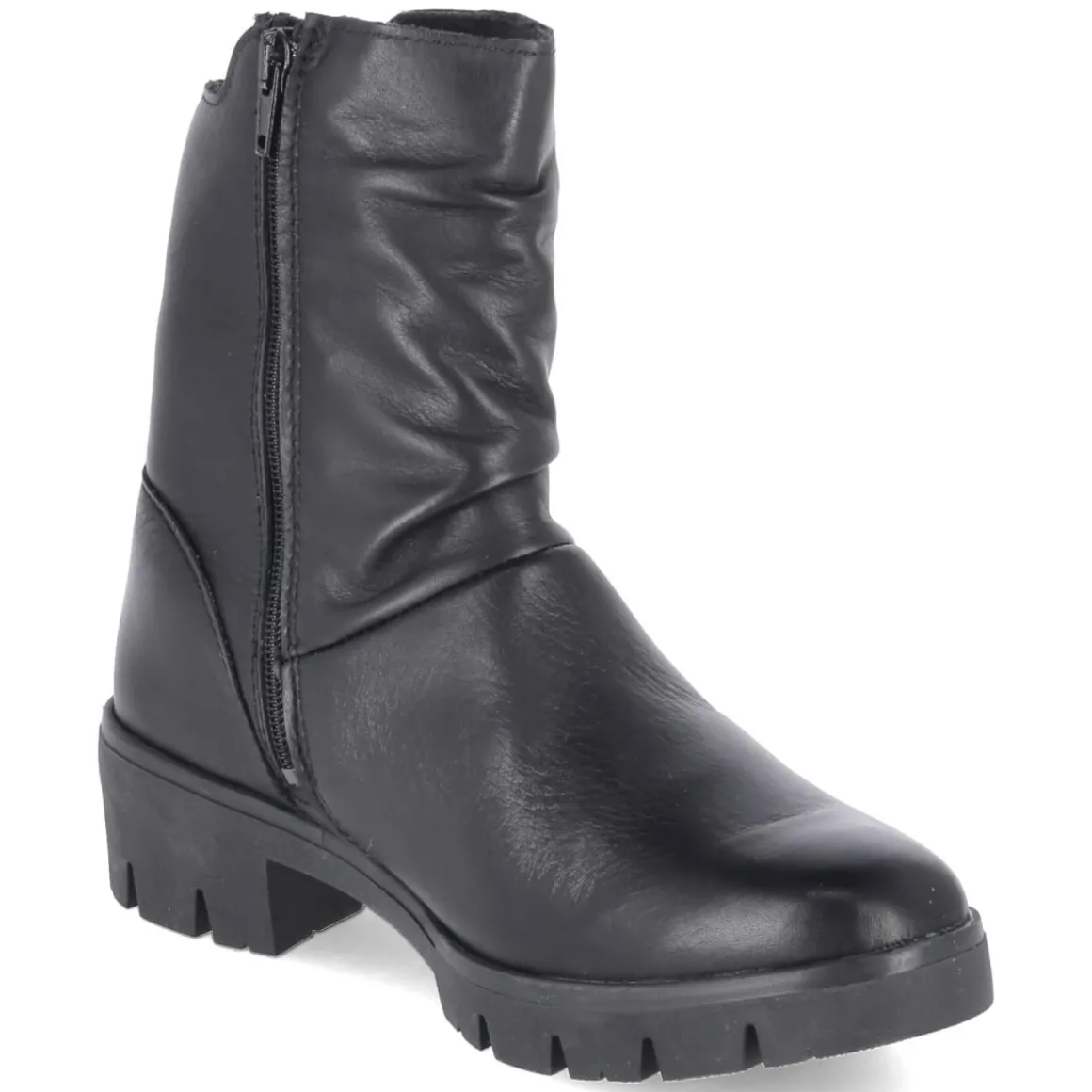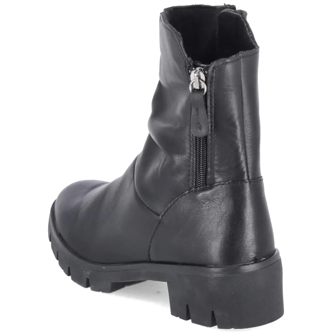Die Stiefeletten MOLLY 04 von Beliana verbinden klare Linien mit funktionalen Details. Schwarzes Glattleder in langlebiger Qualität und eine runde Spitze verleihen dem Design zeitlose Ruhe, während der 5 cm hohe Blockabsatz für angenehme Höhe und sicheren Stand sorgt. Ein textiles Fußbett und das herausnehmbare Wechselfußbett unterstützen den Komfort im Alltag. Leichte Fütterung wärmt an kühlen Tagen, die seitlichen Reißverschlüsse erleichtern den Einstieg. Die sehr flexible, rutschfeste Profilsohle und der verstärkte Fersenbereich geben Halt auf unterschiedlichen Untergründen. Das Modell fällt normal aus und lässt sich vielseitig kombinieren – von Office-Outfits bis Weekend-Looks. Modetipp: Mit geradem Midirock, Wollstrick und einer strukturierten Umhängetasche entsteht ein ruhiger, eleganter Look, der die klare Silhouette der Stiefelette betont.