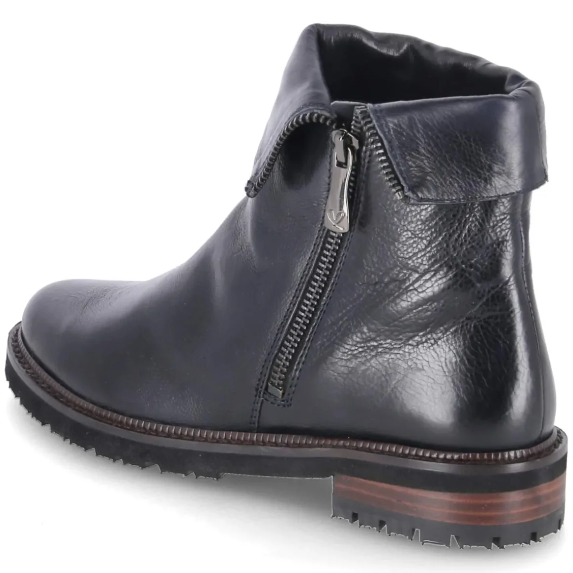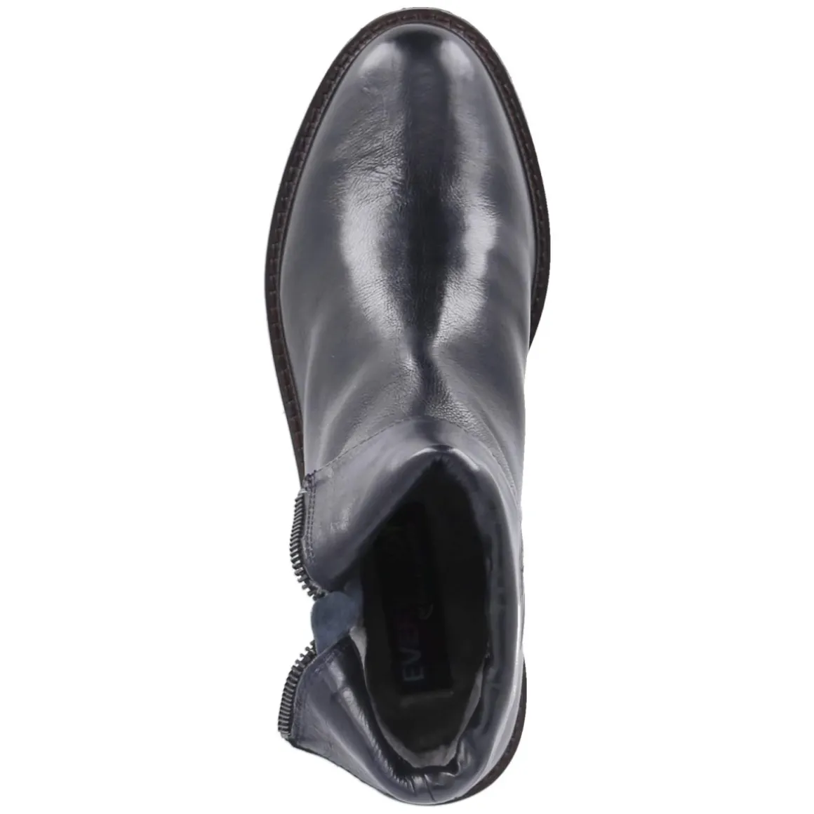 Die Stiefeletten NORMA von Everybody verbinden zeitloses Design mit komfortabler Alltagstauglichkeit. Das langlebige Echtleder in glatter Ausführung zeigt ein tiefes Blau, das je nach Licht fast Schwarz wirken kann, und unterstreicht die edle Anmutung. Eine runde Schuhspitze und der flache Blockabsatz mit 3 cm Höhe sorgen für eine ausgewogene, feminine Silhouette und stabilen Stand. Der bequeme Reißverschlußeinstieg erleichtert das An- und Ausziehen, während der umgeschlagene Schaft flexible Styling-Optionen eröffnet. Innen überzeugt weiches Textilfutter mit angenehm wärmendem Fleecelining, die Decksohle aus Textil ergänzt den Tragekomfort. Die flexible, rutschfeste Laufsohle bietet zuverlässigen Grip im urbanen Alltag. Für Damen entwickelt und größengetreu, begleitet dieses Modell Erwachsene stilvoll vom Büro bis zum Wochenende. Modetipp: Zum knöchelfreien Straight-Leg-Denim und einem strukturierten Wollmantel kombinieren, um die konturierte Form des Schaftes zu betonen.