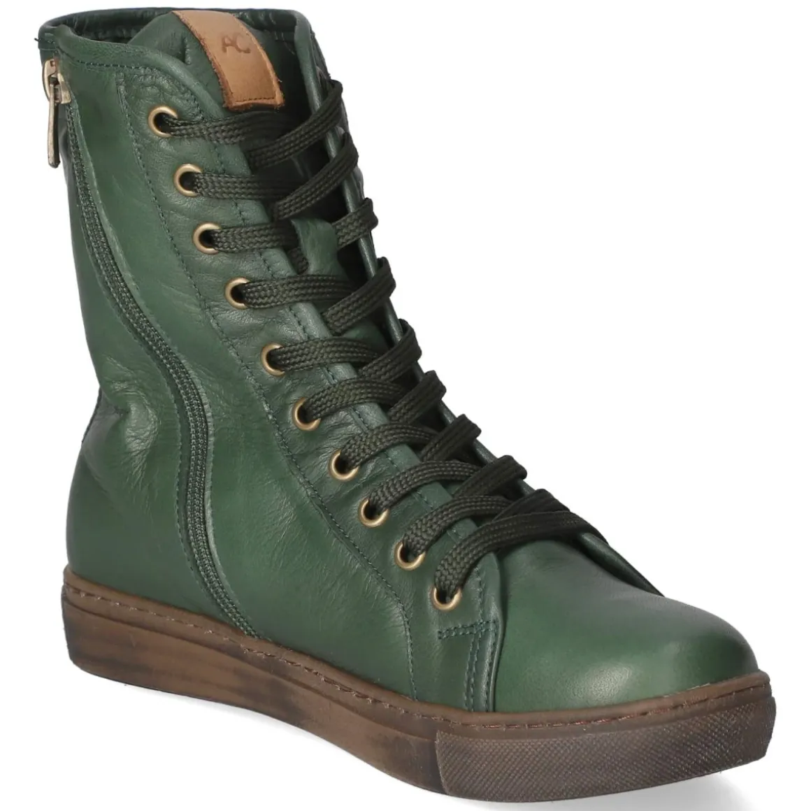 Diese grünen Stiefeletten von Andrea Conti bringen Wohlgefühl und Stil durch die kalte Saison. Atmungsaktives Echtleder in glatter Ausführung umschließt den Fuß angenehm, während das weiche, wärmende Futter zuverlässig isoliert. Die runde Spitze bietet entspannten Zehenraum, die Passform fällt normal aus. Für individuellen Halt sorgt die Schnürung, der seitliche Reißverschluss ermöglicht schnelles An- und Ausziehen. Ein Wechselfußbett mit Decksohle aus Leder unterstützt natürliches Fußklima und kann bei Bedarf gegen eigene Einlagen getauscht werden. Die flexible, rutschhemmende Laufsohle verleiht sicheren Tritt, der verstärkte Fersenbereich stabilisiert bei jedem Schritt. Das angenehm geringe Gewicht steigert den Tragekomfort im Alltag. Modetipp: Der frische Grünton setzt zu cremefarbenen Wollmänteln und Denim ein hochwertiges Statement; Ton-in-Ton mit Khaki entsteht ein moderner Utility-Look.