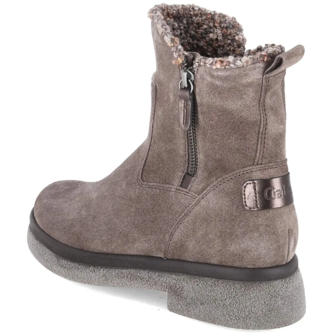Diese Damen-Stiefeletten von Gabor vereinen zeitlose Alltagstauglichkeit mit feinen Details. Das langlebige Rauleder in Taupe verleiht dem Obermaterial eine elegante Struktur, während die runde Schuhspitze und der 4 cm hohe Blockabsatz für Komfort und Stabilität stehen. Eine flexible, griffige Laufsohle unterstützt sicheren Halt, das weiche Fußbett und die Decksohle aus Textil sorgen für angenehmes Tragegefühl. Praktisch sind der seitliche Reißverschluss sowie ein zusätzlicher äußerer Reißverschluss zur Schafterweiterung, ergänzt durch Anziehlasche und verstärkte Ferse. Die Krempe in Strickoptik setzt einen modernen Akzent. Die Passform fällt normal aus und bietet vielfältige Kombinationsmöglichkeiten von lässig bis gepflegt. Modetipp: Zu Cropped-Jeans, Feinstrickpullover und einem Wollmantel entsteht ein harmonischer City-Look.