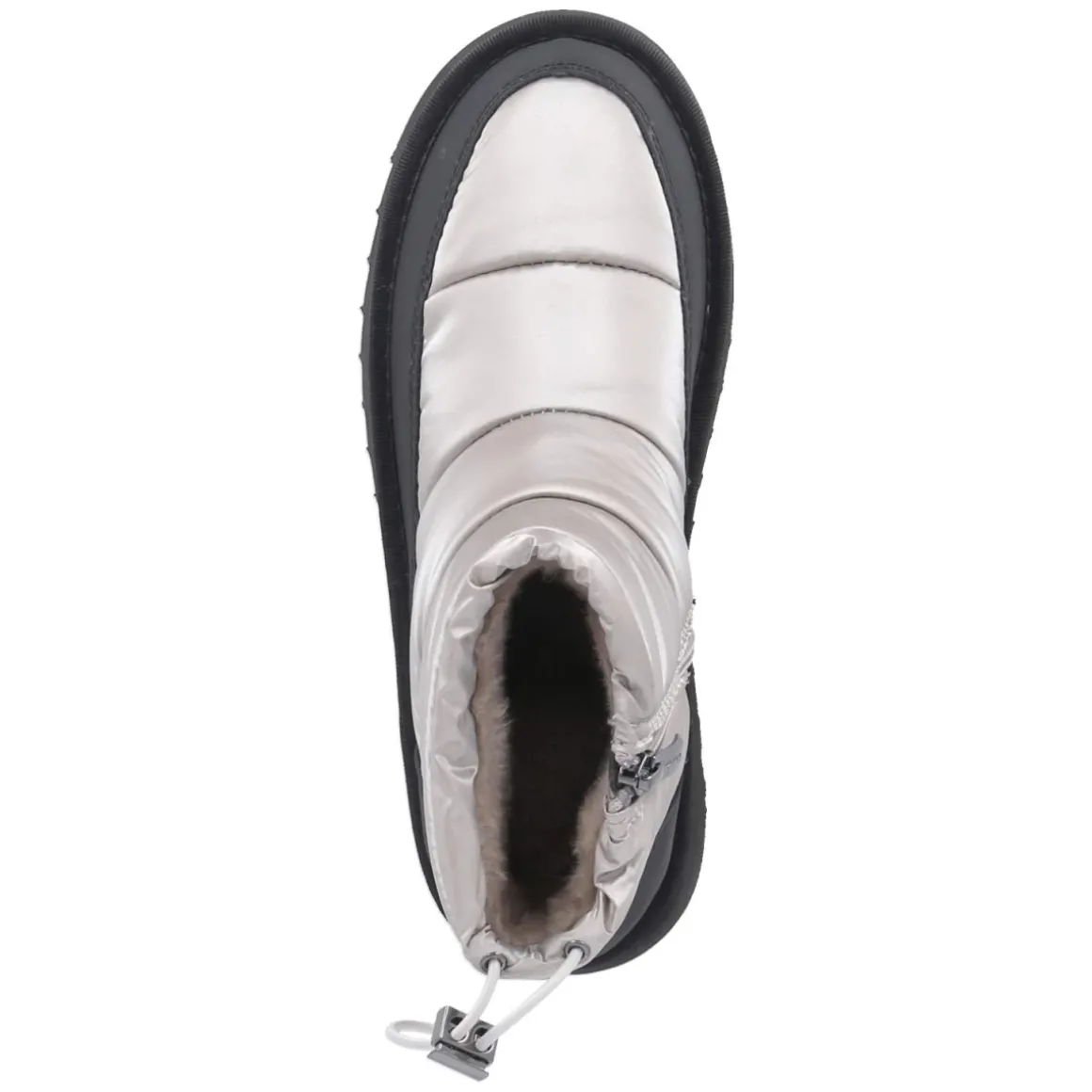 Die Winterboots von Tamaris vereinen Retro-Snowboot-Charme mit funktionalem Komfort. Das seidig glänzende, quer gesteppte Obermaterial aus Synthetik ist besonders pflegeleicht und wird von einem weichen Schaft mit Gummizug und Schnellverschluss ergänzt, der zusammen mit dem praktischen Reißverschluss ein bequemes Ein- und Aussteigen ermöglicht. Warmfutter und eine textile Decksohle sorgen an kalten Tagen für behagliche Wärme, während der verstärkte Fußrahmen und die voluminöse, dennoch erstaunlich leichte Sohle Stabilität bei geringem Gewicht bieten. Die runde Schuhspitze und der 3,5 cm hohe Plateauabsatz unterstützen einen modernen Look in strahlendem Silber. Der Schuh fällt normal aus und richtet sich an Damen, die einen markanten Winterauftritt schätzen. Modetipp: In Kombination mit einem langen Steppmantel und grob gestrickten Wollsocken in Grautönen entsteht ein stilvoller, urbaner Winter-Look.
