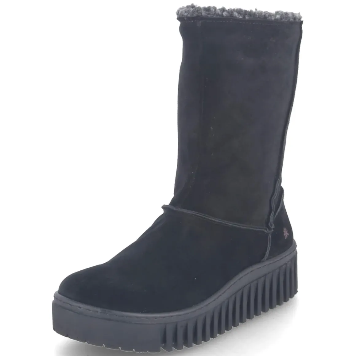 Der Winterboots BRIGHTON von Art verbindet robuste Funktion mit klarer Ästhetik. Langlebiges Echtleder in schwarzem Rauleder-Finish und rustikale Nähte betonen den natürlichen Look, während das warme Futter an kalten Tagen zuverlässig schützt. Die runde Spitze sorgt für Bequemlichkeit, der seitliche Reißverschluss für komfortables An- und Ausziehen. Mit 4 cm Plateauabsatz entsteht stabiler Stand und eine moderne Silhouette. Die Decksohle aus Synthetik ist pflegeleicht, das Wechselfußbett erhöht den Tragekomfort im Alltag. Der Schnitt fällt normal aus und passt Damen, die einen ausdrucksstarken Winterbegleiter suchen. Modetipp: Zu geradem Wollmantel, grobem Strickkleid und blickdichten Strümpfen entsteht ein urbaner Winter-Look, der den Boot in den Mittelpunkt rückt.