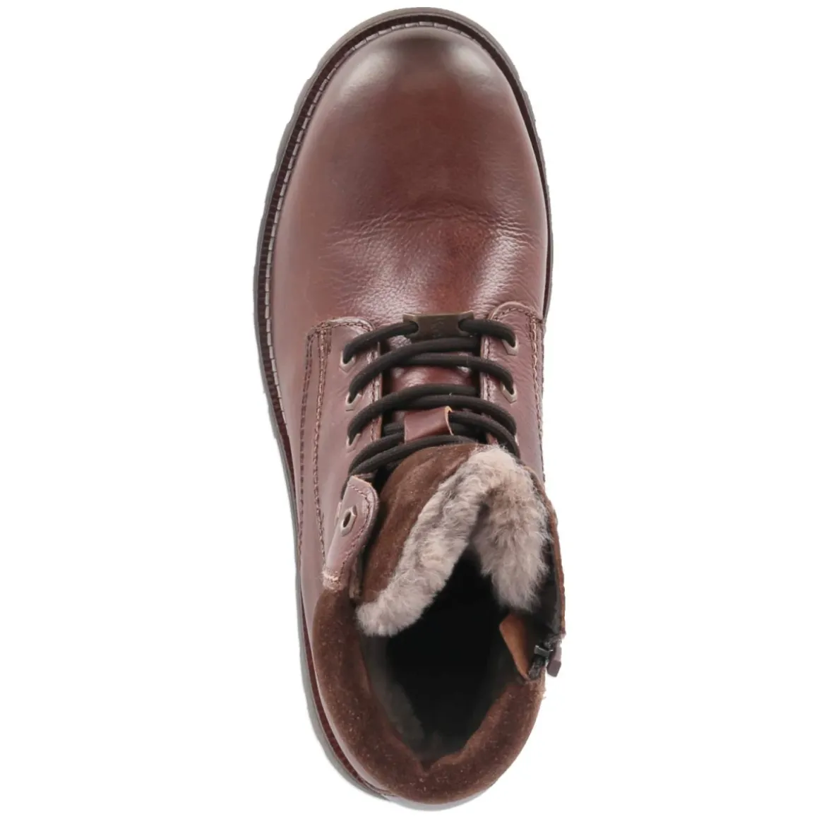 Der Winterboot von Salamander präsentiert sich als robustes Herrenmodell aus hochwertigem Echtleder in warmem Braun mit rustikalem Charakter. Das runde Leistenprofil gewährt komfortablen Zehenraum, während der gepolsterte Einstieg und die verstärkte Ferse für Stabilität auf längeren Wegen sorgen. Das Lammfellfutter hält zuverlässig warm, die Textil-Decksohle ergänzt den Tragekomfort. Ein 3,5 cm hoher Blockabsatz unterstützt einen sicheren Stand, die rutschfeste Profilsohle gibt Grip auf nassen und winterlichen Untergründen. Dank Schnürsenkeln lässt sich die Passform präzise regulieren, der seitliche Reißverschluss ermöglicht schnelles An- und Ausziehen. Der Größenhinweis fällt normal aus. Modetipp: Mit Raw-Denim, grobem Strickpullover und Parka entsteht ein authentischer Outdoor-Look, den ein Ledergürtel im ähnlichen Braunton harmonisch abrundet.