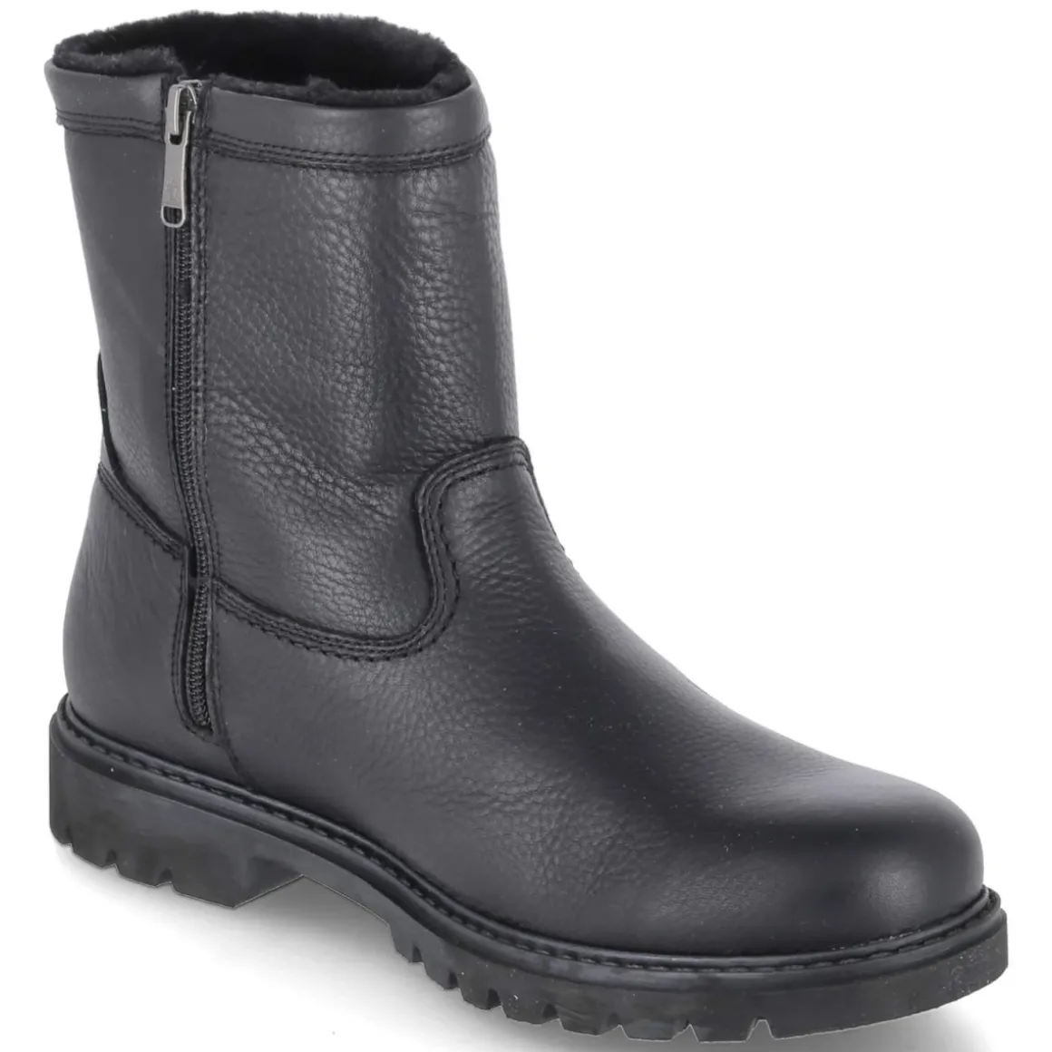 Die Winterboots FEDRO C3 von Panama Jack verbinden robuste Funktion mit puristischem Stil. Schwarzes Glattleder trifft auf ein warmes Kunstfellfutter, das die Füße zuverlässig umhüllt. Der runde Leisten und der 3 cm hohe Blockabsatz sorgen für komfortablen Stand, während der seitliche Reißverschluss einen bequemen Einstieg ermöglicht. Wasserfest und zugleich wasserabweisend konstruiert, bleibt das Innere dank atmungsaktiver Eigenschaften angenehm ausgeglichen. Die Textil-Decksohle liegt auf einem herausnehmbaren Wechselfußbett, ideal für individuelle Einlagen. Eine flexible, rutschhemmende Profilsohle gibt sicheren Halt, die verstärkte Ferse mit Logodetail setzt ein dezentes Markenstatement. Passformtreue erleichtert die Wahl der Größe. Modetipp: Zu dunkler Raw-Denim, Feinstrickpullover und einem klassischen Wollmantel entfalten die Boots ihren urbanen Charakter.