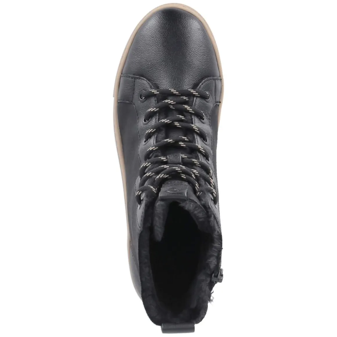 Der Wintersneaker von Tamaris in klassischem Schwarz vereint Komfort und urbanen Stil. Das Obermaterial aus Leder und Textil bildet einen robusten Material-Mix, während Warmfutter und ein gepolstertes Fußbett angenehme Wärme und Dämpfung schenken. Die rutschfeste Plateausohle mit etwa 3 cm Höhe sorgt für stabilen Halt, die runde Schuhspitze bietet Zehenfreiheit. Praktisch präsentieren sich Schnürsenkel und zusätzlicher Reißverschluss: variabler Sitz und schneller Einstieg in einem. Eine verstärkte Ferse unterstützt den sicheren Tritt, die textile Decksohle ergänzt den weichen Tragekomfort. Dank normaler Passform fällt die Größe verlässlich aus. Modetipp: Zum Wollmantel und schmaler Denim sowie groben Stricksocken kombinieren – so entsteht ein lässiger City-Look mit winterfester Note.