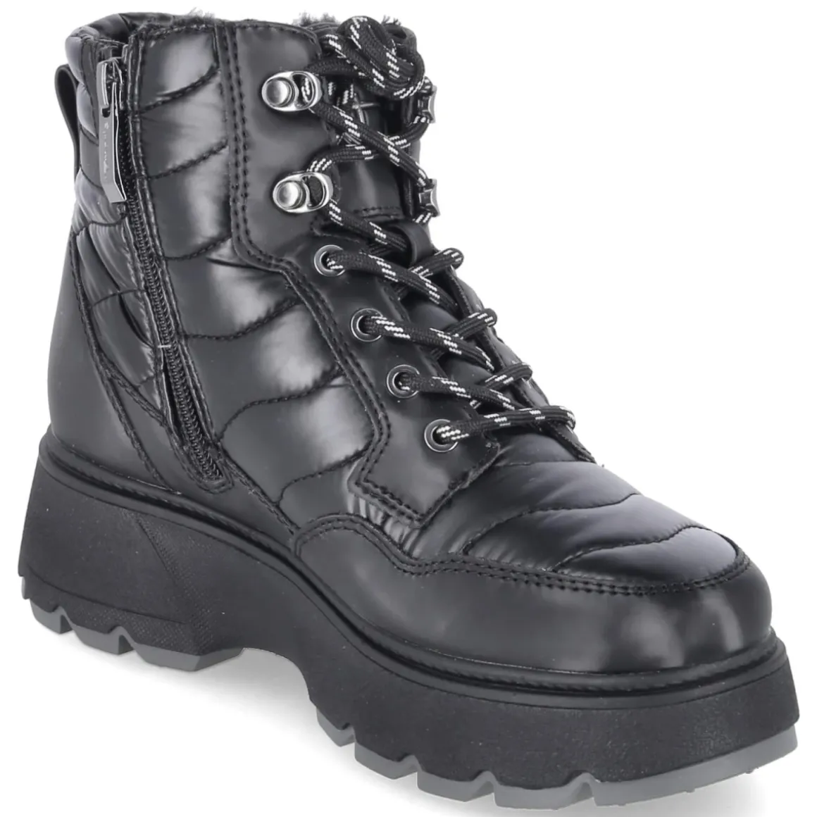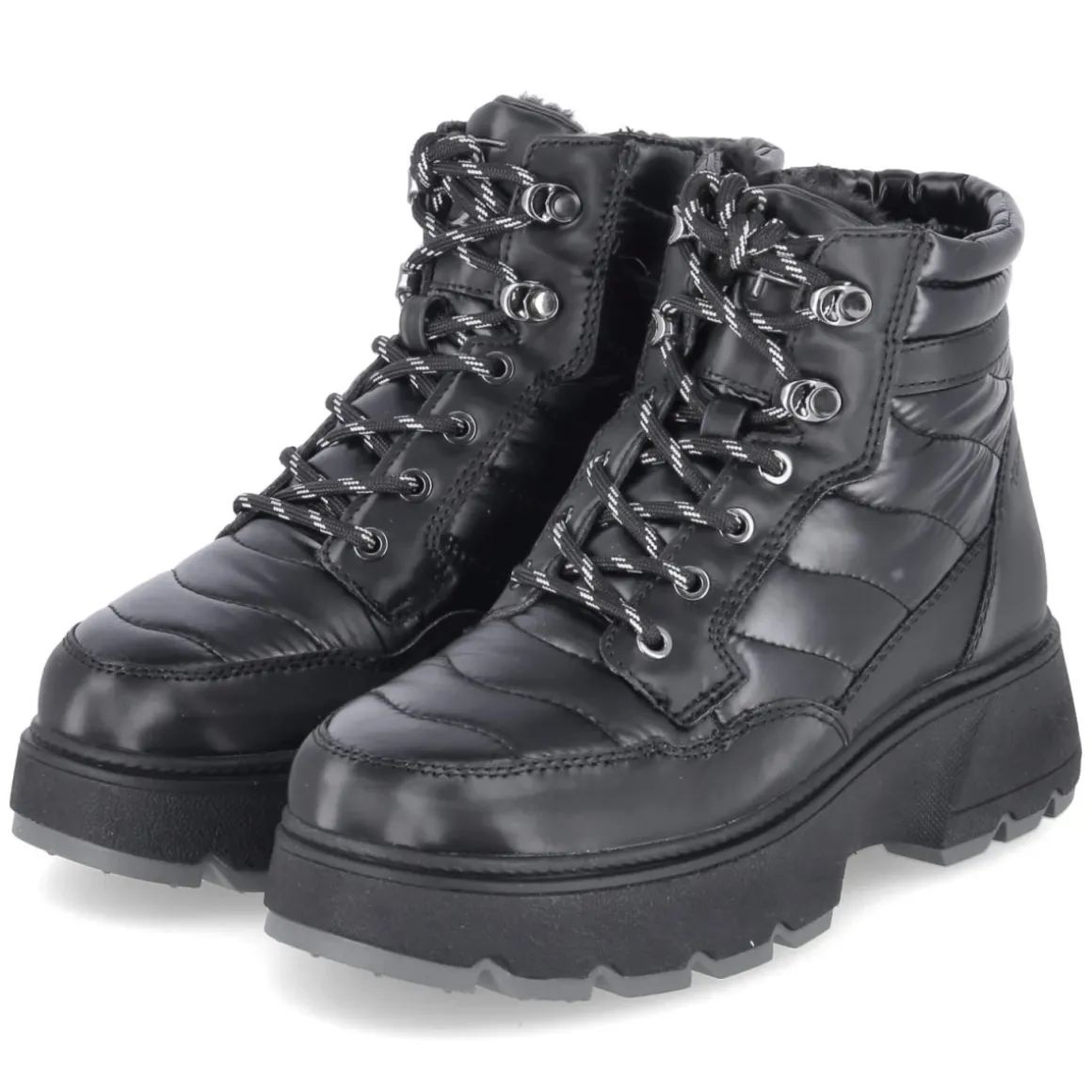 Der Tamaris Wintersneaker in Schwarz verbindet urbanen Look mit verlässlicher Wintertauglichkeit. Das abgesteppt schimmernde Obermaterial aus Textil und Synthetik sorgt für eine elegante Note, während das warme Futter und die gepolsterte Thermoeinlage behagliche Wärme liefern. Eine rutschfeste Profilsohle bietet Grip auf glatten Wegen, der 4 cm hohe Plateau-Absatz verleiht subtile Höhe und Stabilität. Dank Schnürung und zusätzlichem Reißverschluss gelingt der Einstieg unkompliziert, verstärkte Zehen- und Fersenbereiche erhöhen die Robustheit. Die Decksohle aus Textil liegt angenehm am Fuß, das Wechselfußbett ermöglicht individuelle Einlagen. Der Schuh fällt größengetreu aus, die runde Spitze rundet den alltagstauglichen Komfort ab. Besonders hervorzuheben: die Verarbeitung aus veganen Materialien. Modetipp: In Kombination mit weiter Wollhose, langem Mantel und Strickschal entsteht ein cleaner City-Winterlook mit sportivem Akzent.