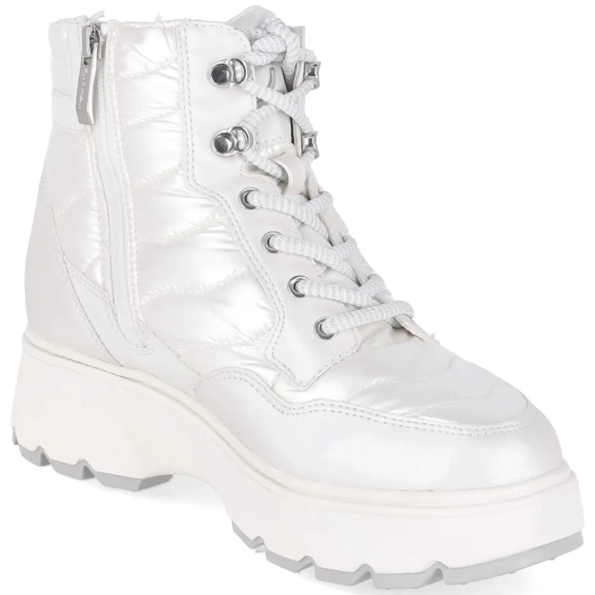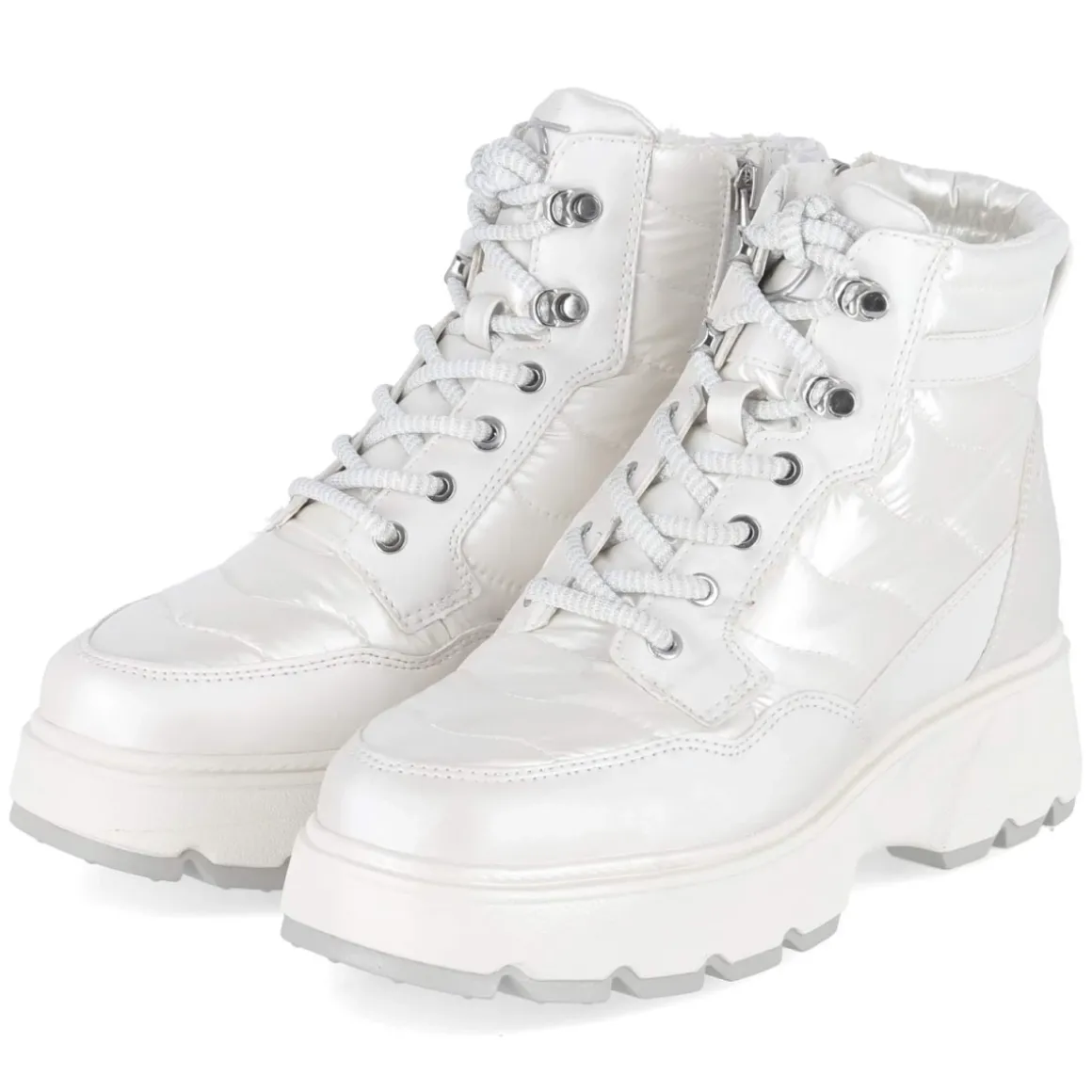 Der Tamaris Wintersneaker in strahlendem Weiß verbindet urbanen Look mit wintertauglichem Komfort. Das Obermaterial aus Textil und Synthetik zeigt eine abgesteppt wirkende Oberfläche mit seidigem Glanz, während die runde Schuhspitze und das 4-cm-Plateau eine moderne Silhouette formen. Warmfutter und gepolsterte Thermoeinlage sorgen für behagliche Wärme an kalten Tagen, das Wechselfußbett ermöglicht individuelle Anpassung. Der zusätzliche Reißverschluss neben der Schnürung erleichtert das An- und Ausziehen, eine Anziehlasche unterstützt dabei. Verstärkte Fersen- und Zehenbereiche geben Stabilität, die wasserabweisende Ausstattung hält Feuchtigkeit zuverlässig ab. Aus veganen Materialien gefertigt, bietet das Modell eine tierfreundliche Alternative ohne Kompromisse im Stil. Modetipp: In Kombination mit heller Steppjacke und cremefarbenem Strickkleid entsteht ein cleaner Winter-Look mit sportivem Finish.