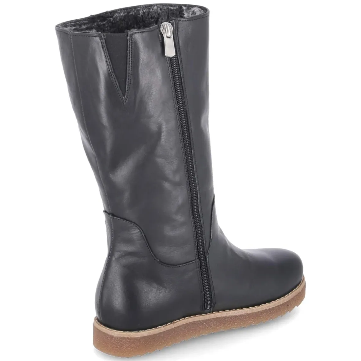 Zeitloser Begleiter für kalte Tage: Der schwarze Winterstiefel von Andrea Conti verbindet robustes Echtleder mit weichem Warmfutter aus Kunstfell und sorgt für wohlige Wärme vom ersten Schritt an. Das glatte Oberleder präsentiert sich pflegeleicht und formstabil, die runde Spitze bietet entspanntes Platzangebot. Ein seitlicher Reißverschluss erleichtert den Einstieg, ein kleiner Elastikeinsatz am Schaft erhöht die Beweglichkeit. Die Lederdecksohle liegt angenehm am Fuß, das gepolsterte, herausnehmbare Fußbett schafft zusätzlichen Komfort und ermöglicht den Einsatz eigener Einlagen. Als relaxtes Leichtgewicht entlastet der Stiefel im Alltag, während die flexible, rutschfeste Laufsohle sicheren Halt auf winterlichen Wegen liefert. Mit einem Schafthöhenmaß von ca. 27 cm und einem Umfang von ca. 36 cm sowie normaler Passform entsteht eine harmonische Silhouette. Modetipp: Besonders stimmig zu Wollmantel, Strickkleid und blickdichter Strumpfhose in Anthrazit.