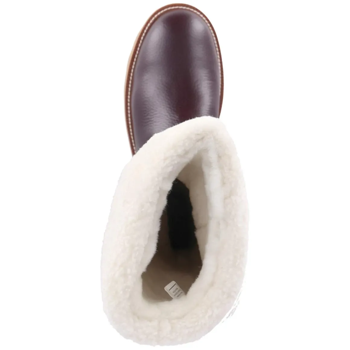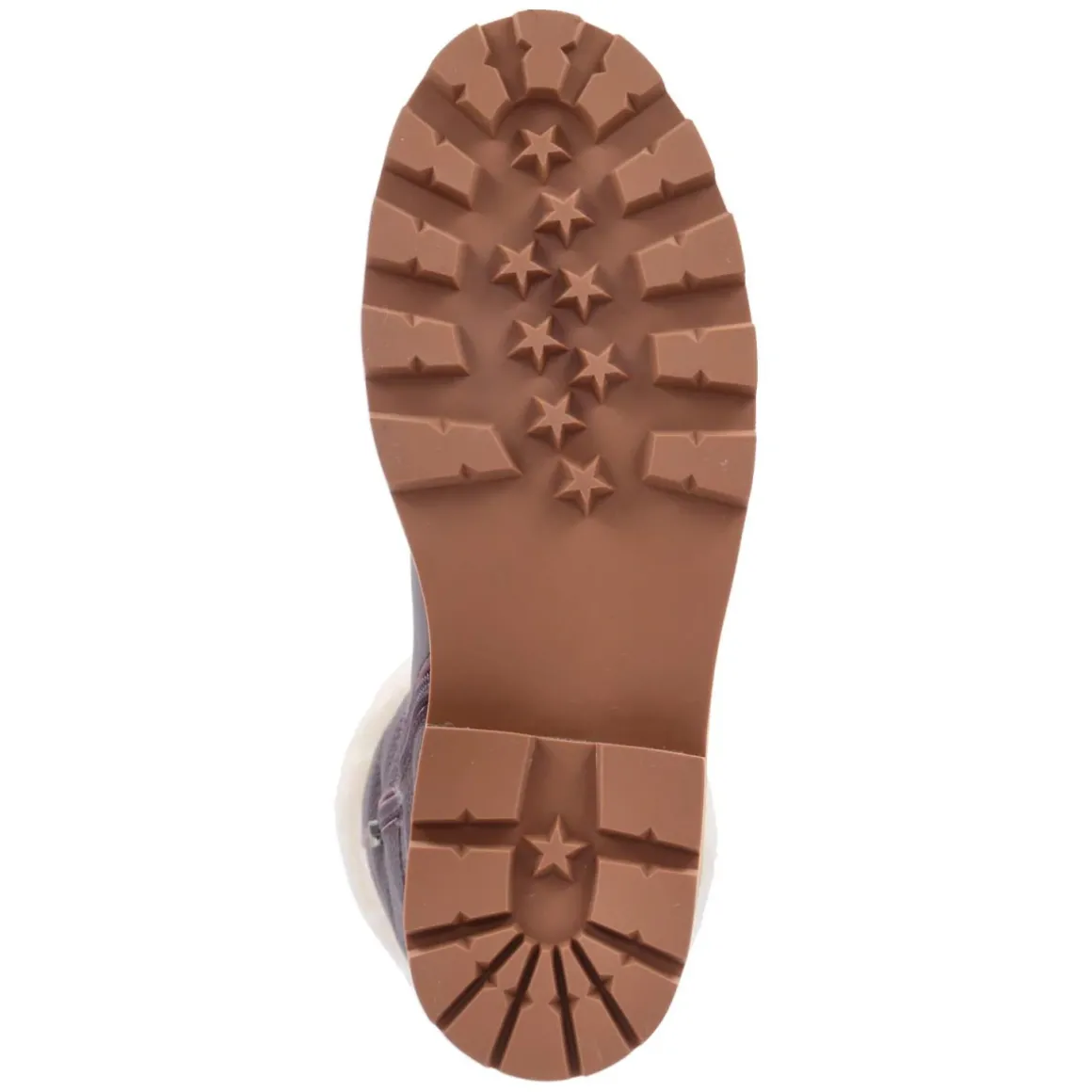 Der Australia Luxe Winterstiefel TITAN verbindet luxuriöse Ästhetik mit verlässlicher Funktion. Robustes Echtleder in sattem Lila und die runde Spitze verleihen dem hohen Schaft eine zeitlose Silhouette. Innen sorgt warmes Lammfellfutter für wohlige Isolation, während die textile, wärmende Decksohle mit Fersenpolster sanft abfedert. Ein praktischer Reißverschluss erleichtert den Einstieg, zusätzlich angenehm durch den gepolsterten Abschluss in Teddyoptik. Die rutschfeste Profilsohle sichert Halt auf glatten Wegen, die verstärkte Ferse trägt ein edles Metall-Label. Mit einer Schafthöhe von ca. 43 cm und einem Umfang von ca. 34 cm fällt das Modell normal aus und bietet verlässlichen Komfort an kalten Tagen. Modetipp: Das kräftige Lila setzt zu cremefarbenen Strickkleidern und Oversize-Wollmänteln elegante Akzente; Accessoires in Cognac und silberne Schmuckdetails vollenden den Look.