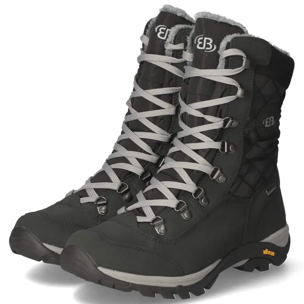 Die Winterstiefeletten FENELLA von Brütting verbinden verlässlichen Wetterschutz mit hohem Tragekomfort. Das Obermaterial aus Leder und Textil hält dank wasserabweisender Ausrüstung Nässe zuverlässig ab, während die atmungsaktive Verarbeitung ein angenehmes Fußklima unterstützt. Warmfutter schützt an kalten Tagen, die runde Schuhspitze bietet Zehenfreiheit und die Schnürung ermöglicht eine präzise Anpassung. Ein Wechselfußbett mit textilem Bezug erhöht die Dämpfung und lässt sich bei Bedarf gegen eigene Einlagen tauschen. In klassischem Schwarz fügt sich das Modell mühelos in zahlreiche Winter-Looks ein und passt zu Alltag und Freizeit gleichermaßen. Die Passform fällt normal aus und sorgt zusammen mit dem weichen Einstiegsgefühl für entspanntes Gehen. Modetipp: Zur schmalen Jeans, Stricksocken in Melange-Optik und einem Oversize-Wollmantel entsteht ein müheloser City-Winterstil mit eleganter Note.