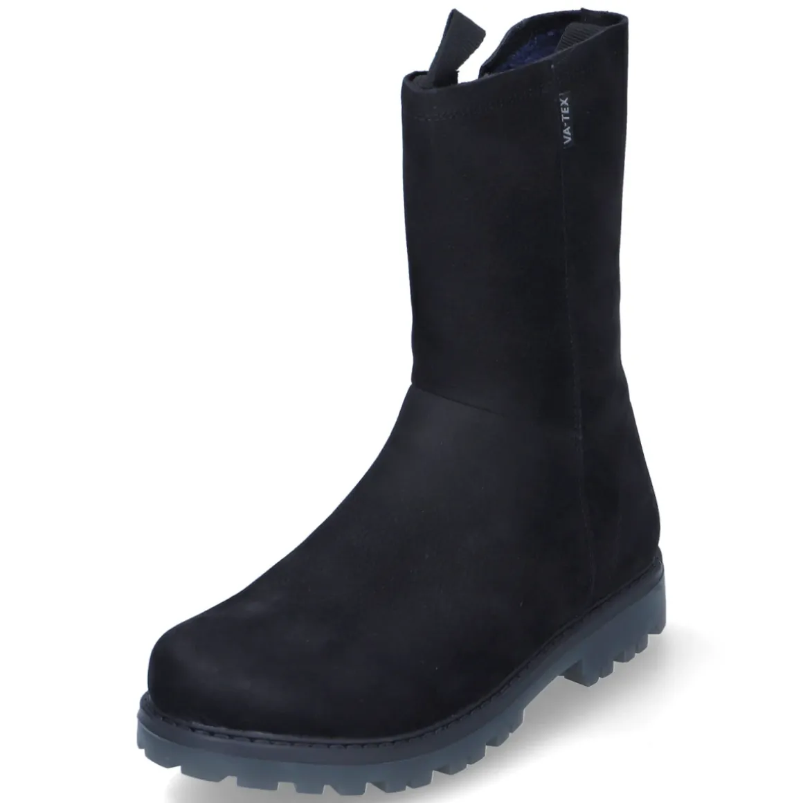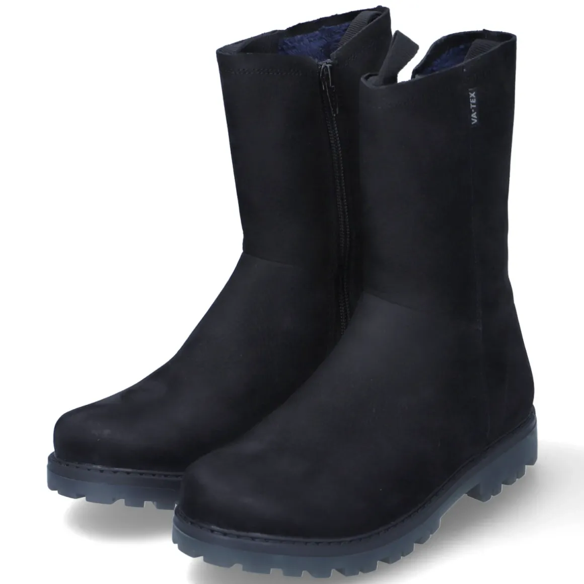 Die Winterstiefeletten NENA von Vado verbinden funktionales Design mit urbanem Look. Schwarzes Rauleder und eine runde Schuhspitze sorgen für zeitlosen Stil, während das VA-TEX-Laminat die Füße zuverlässig wasserfest schützt und zugleich atmungsaktiv bleibt. Ein leichtes, warmes Futter wärmt an kühlen Tagen, ohne aufzutragen. Der bequeme Reißverschlußeinstieg mit zwei Anziehlaschen erleichtert das Hineinschlüpfen, die gepolsterte, wechselbare Textildecksohle erhöht den Tragekomfort im Alltag. Für Halt auf nassen Wegen sorgt die robuste, rutschhemmende Profilsohle; ein stabiler Blockabsatz und der verstärkte Fersenbereich geben zusätzliche Stabilität. Das Modell fällt größengetreu aus und ist ideal für aktive Kinder und Jugendliche. Modetipp: In Kombination mit dunklen Skinny-Jeans, grob gestrickten Socken und einer gesteppten Pufferjacke entsteht ein lässiger Winter-Look.