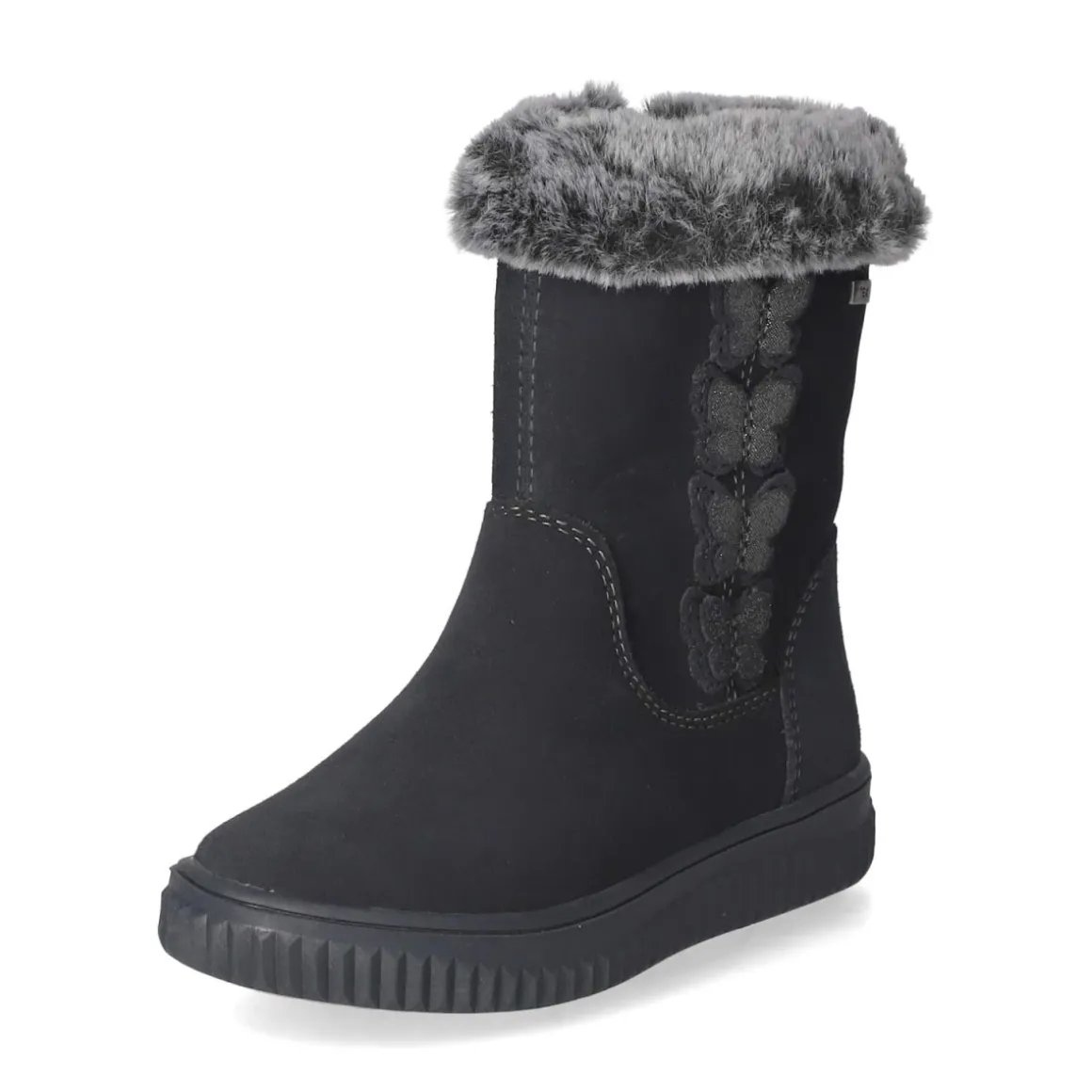Die Winterstiefeletten YAIRA von Lurchi begleiten Kinder warm und sicher durch kalte Tage. Das sehr weiche Rauleder in sattem Blau schmiegt sich angenehm an, während glitzernde Schmetterlingsmotive für fröhliche Akzente sorgen. Ein wärmendes Textilfutter speichert die Wärme, die runde Schuhspitze lässt Zehen viel Platz. Dank Reißverschlusseinstieg gelingt das An- und Ausziehen mühelos, und die textile Wechseldecksohle ermöglicht individuelle Einlagen oder frischen Wärmekomfort. Die flexible, rutschhemmende Profilsohle gibt Halt auf nassen Wegen; die wasserabweisende TEX-Ausstattung schützt vor Spritzwasser und Schnee. YAIRA fällt größengetreu aus und ist damit eine unkomplizierte Wahl für jeden Tag. Modetipp: Besonders schön zu Strickleggings, Jeansrock und einem wattierten Parka in Blau- oder Beerentönen.