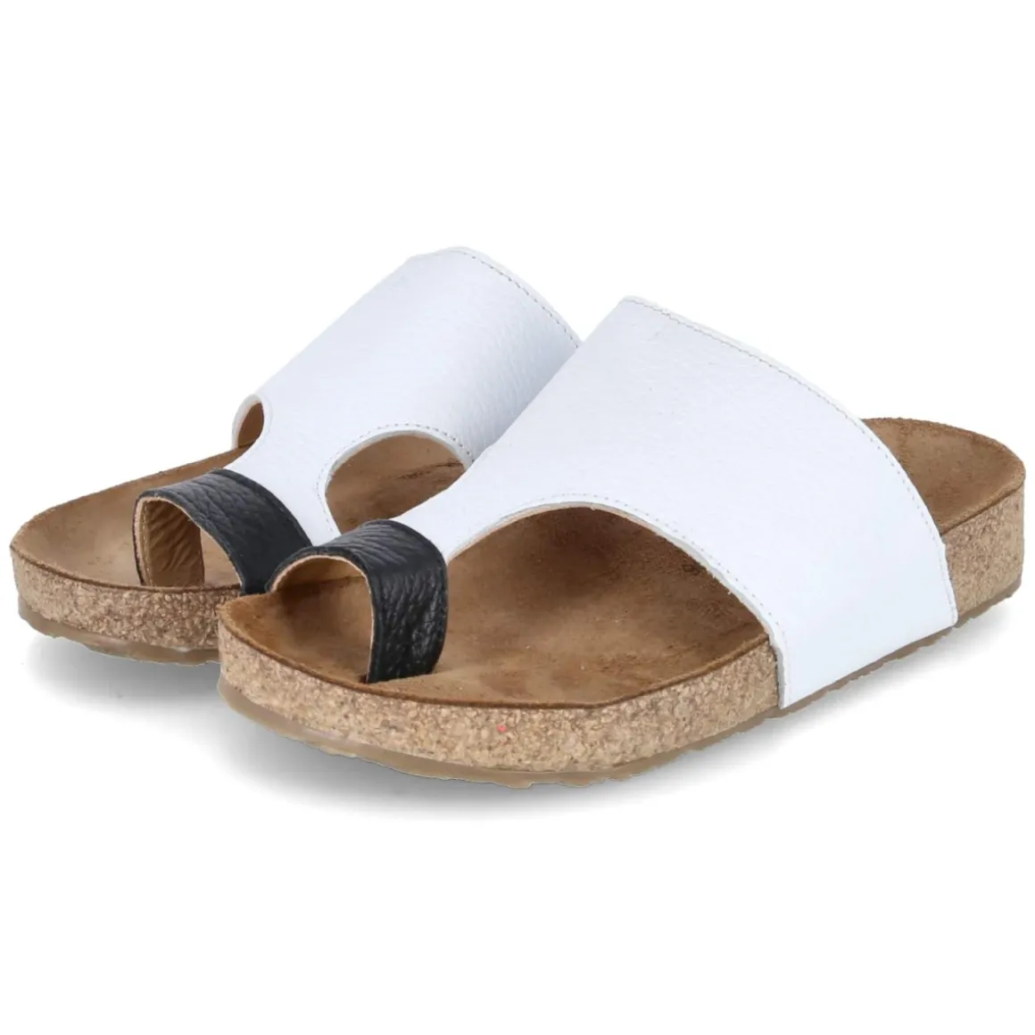 Zehentrenner ANKA von Haflinger verbindet puristische Ästhetik mit durchdachtem Komfort. Das weiße Glattleder wirkt klar und modern, während das schwarze Zehenelement einen markanten Kontrast setzt. Langlebiges Echtleder schmiegt sich angenehm an und entwickelt mit der Zeit Charakter. Das gepolsterte, vorgeformte Tieffußbett mit Lederbezug stützt den Fuß natürlich, entlastet bei jedem Schritt und sorgt für ein ausgeglichenes Tragegefühl. Eine rutschfeste Laufsohle gibt verlässlichen Halt auf glatten Böden, die offene Schuhspitze lässt Luft zirkulieren. Ohne Verschluss gelingt der unkomplizierte Einstieg, die Passform fällt normal aus und trägt sich angenehm den ganzen Tag. Modetipp: Für einen frischen City-Look mit weiter Leinenhose in Naturtönen, weißer Oversize-Bluse und einer strukturierten Basttasche kombinieren; feiner Goldschmuck unterstreicht die moderne, reduzierte Optik.