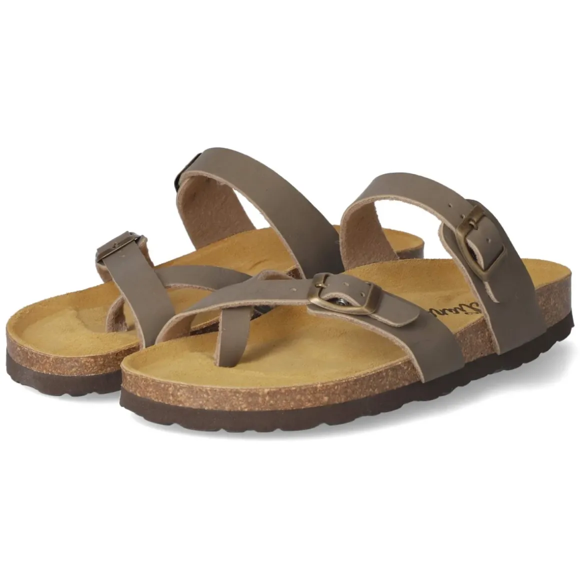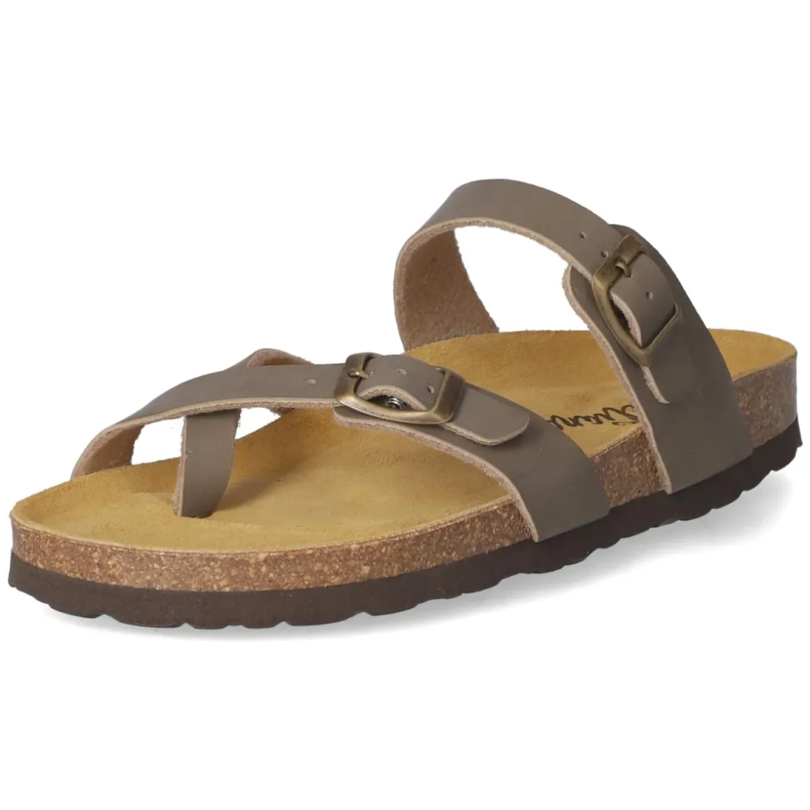 Der Zehentrenner von Beliana zeigt sich in warmem Braun und verbindet lässigen Sommerstil mit durchdachtem Komfort. Das Obermaterial aus Synthetik überzeugt mit pflegeleichter Oberfläche, während die lederne Decksohle und das vorgeformte, weich gepolsterte Fußbett ein angenehmes Tragegefühl über den ganzen Tag bieten. Eine flexible Laufsohle unterstützt den natürlichen Abrollvorgang und sorgt für Trittsicherheit auf Stadtpflaster wie auf Promenaden. Dank sicherer Schnallen und verstellbarem Verschluss lässt sich der Sitz präzise anpassen. Die offene Schuhspitze unterstreicht den luftigen Charakter und macht das Modell zur vielseitigen Wahl für Damen. Der Schnitt fällt normal aus und erleichtert die Größenauswahl. Modetipp: Ideal zu einem cremefarbenen Midikleid aus Baumwolle und einer Flechttasche, ergänzt durch zarten Goldschmuck.