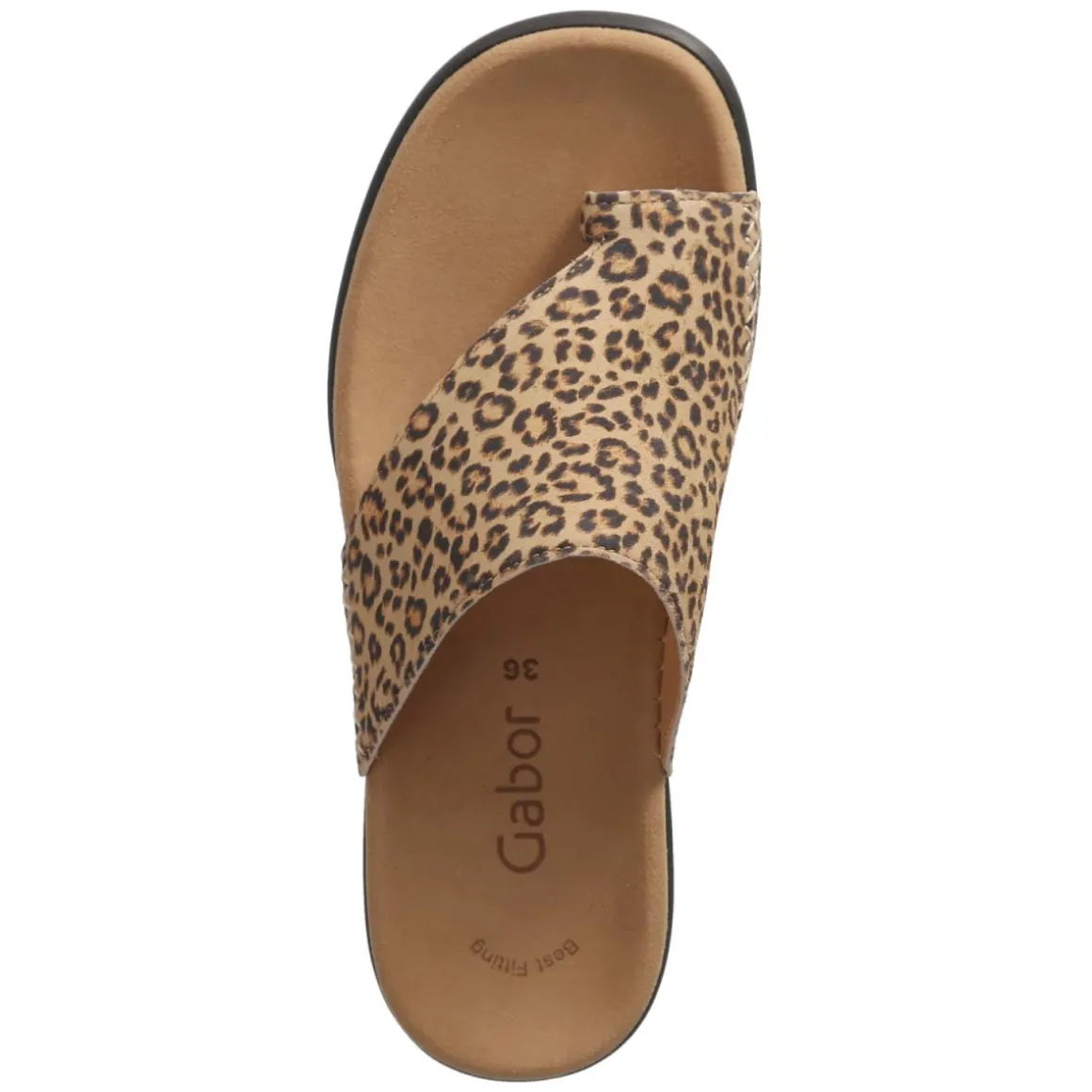 Der Gabor Zehentrenner verbindet sommerliche Leichtigkeit mit Komfort. Das Obermaterial aus weichem Rauleder zeigt sich in Beige und erhält durch ein markantes Animal Print-Detail modische Raffinesse. Atmungsaktives Echtleder sorgt für ein ausgeglichenes Fußklima, während die textile Decksohle in Kombination mit dem gepolsterten Fußbett den ganzen Tag über sanften Halt und angenehme Dämpfung bietet. Die offene Schuhspitze und der unkomplizierte Einstieg unterstreichen die entspannte Silhouette und machen den Slip-on zum unkomplizierten Begleiter im Alltag wie im Urlaub. Dank größengetreuem Sitz lässt sich das Modell verlässlich einplanen. Modetipp: Zum fließenden Midikleid in Naturtönen und einer Korbtasche kombinieren, dazu feiner Goldschmuck – so kommt der Animal Print als edler Akzent perfekt zur Geltung.