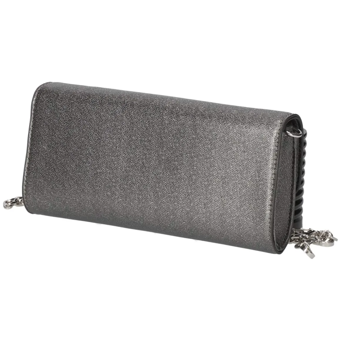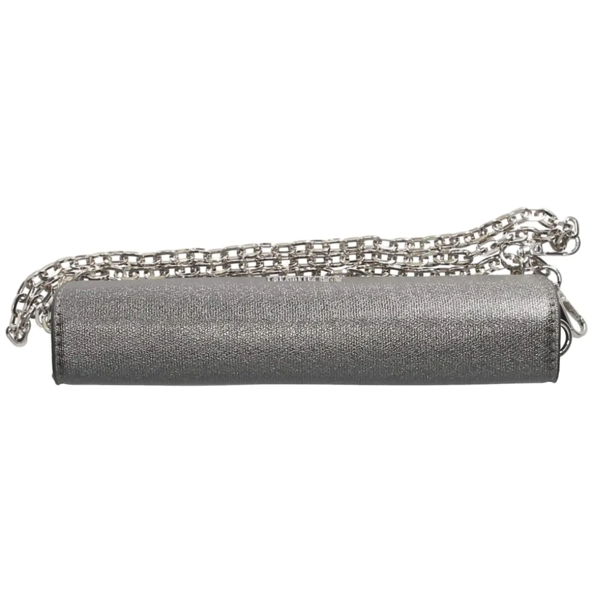 Diese silberne Abendtasche für Damen entfaltet eleganten Glanz in kompakter Form. Der klare Überschlag mit Magnetverschluss schließt zuverlässig und betont die schlanke Silhouette. Eine silberglänzende Metallkette mit ca. 130 cm Länge erlaubt das Tragen über Schulter oder quer, während markentypische Logo- und Metallelemente den edlen Auftritt abrunden. Im Hauptfach sorgen ein Steckfach sowie vier Kartenfächer für geordnete Essentials, sodass ein separates Portemonnaie oft überflüssig wird. Mit Maßen von ca. 11 x 23 x 3 cm und etwa 0,8 Litern Volumen finden Smartphone, Schlüssel und Lippenstift mühelos Platz. Die metallische Farbe reflektiert das Licht subtil und verleiht abendlichen Looks eine luxuriöse Note. Modetipp: Zur schwarzen Slipdress-Silhouette und filigranen Sandaletten entsteht ein zeitloser Red-Carpet-Effekt; tagsüber setzt die Tasche zum Oversize-Blazer einen glamourösen Akzent.