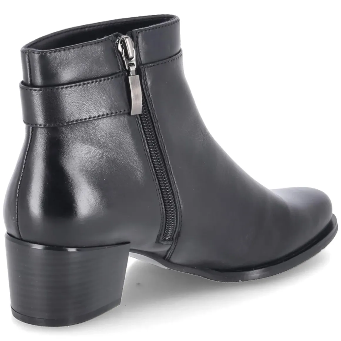 Der Ankle Boot von Kaerlek setzt auf zeitlose Eleganz und zuverlässigen Komfort. Feines Glattleder in tiefem Schwarz, eine runde Vorderkappe und der stabile Blockabsatz in Holzoptik (5 cm) formen eine feminine Silhouette, die sowohl im Büro als auch am Abend überzeugt. Das leichte Fleecefutter hält an kühleren Tagen angenehm warm, während das komfortable Wechselfußbett in Kombination mit der textilen Decksohle für ein weiches Tragegefühl sorgt. Ein seitlicher Reißverschluss ermöglicht einen schnellen Einstieg, die Zierschnalle in Titanoptik am Knöchel verleiht einen edlen Akzent. Die Passform fällt größengetreu aus und unterstützt einen sicheren Auftritt. Modetipp: Mit cropped Straight-Jeans und strukturiertem Wollmantel entsteht ein moderner City-Look, alternativ ergänzt ein Midirock mit blickdichten Strümpfen eine elegante, herbstliche Note.