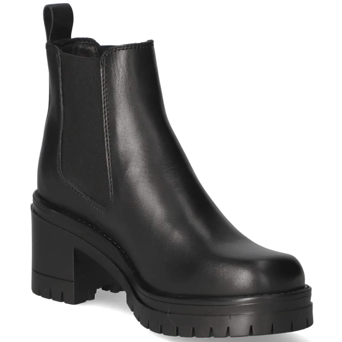 Der Ankle Boot von Fräulein Frida vereint zeitlose Eleganz mit hohem Tragekomfort. Das schwarze Glattleder zeichnet sich durch eine angenehme Atmungsaktivität aus und schmiegt sich dank weicher Verarbeitung an den Fuß. Charakteristische Chelsea-Elemente mit zwei Elastikeinsätzen und Anziehlasche ermöglichen ein müheloses Hineinschlüpfen, während der 5 cm hohe Blockabsatz sicheren Stand und eine feminine Linie betont. Die runde Spitze wahrt klassischen Chic, das gepolsterte Fußbett und die synthetische Decksohle sorgen für entspannte Schritte im Alltag. Eine rutschfeste Profilsohle gibt Halt auf vielfältigen Untergründen. Das Modell fällt größengetreu aus und passt zu Beruf und Freizeit gleichermaßen. Modetipp: Besonders stimmig zu Cropped-Jeans, Strickpullover und strukturiertem Blazermantel oder zu einem Midikleid mit blickdichten Strümpfen.