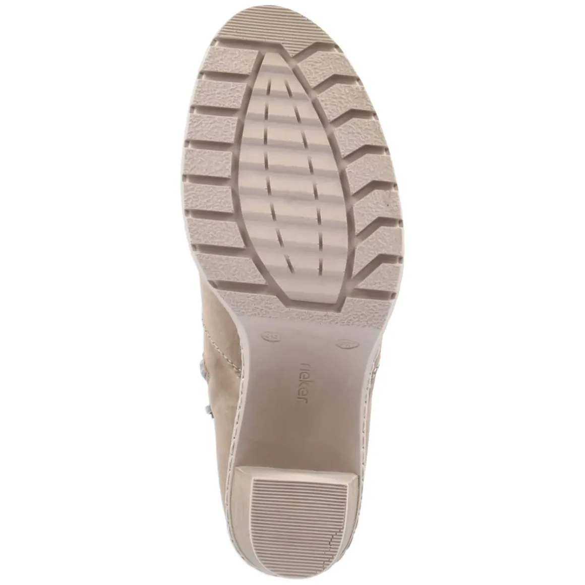 Die Ankle Boots von Rieker in warmem Taupe verbinden feminine Höhe mit alltagstauglichem Komfort. Der 8-cm-Blockabsatz streckt die Silhouette und bietet durch seine stabile Form sicheren Stand. Das pflegeleichte Obermaterial aus Synthetik zeigt sich unkompliziert, die runde Spitze sorgt für angenehme Zehenfreiheit. Ein seitlicher Reißverschluss erleichtert das An- und Ausziehen, unterstützt von Anziehlasche und Elastikeinsatz am Schaft für eine flexible Passform. Die Decksohle aus Textil schmiegt sich weich an, das Wechselfußbett erlaubt individuelle Anpassungen. Leichtes Futter wärmt an kühlen Tagen, während die rutschhemmende Profilsohle verlässlichen Grip liefert. Fällt normal aus und überzeugt mit vielseitigen Kombinationsmöglichkeiten. Modetipp: Zu Midirock, Feinstrick und Wollmantel entsteht ein harmonischer Ton-in-Ton-Look.