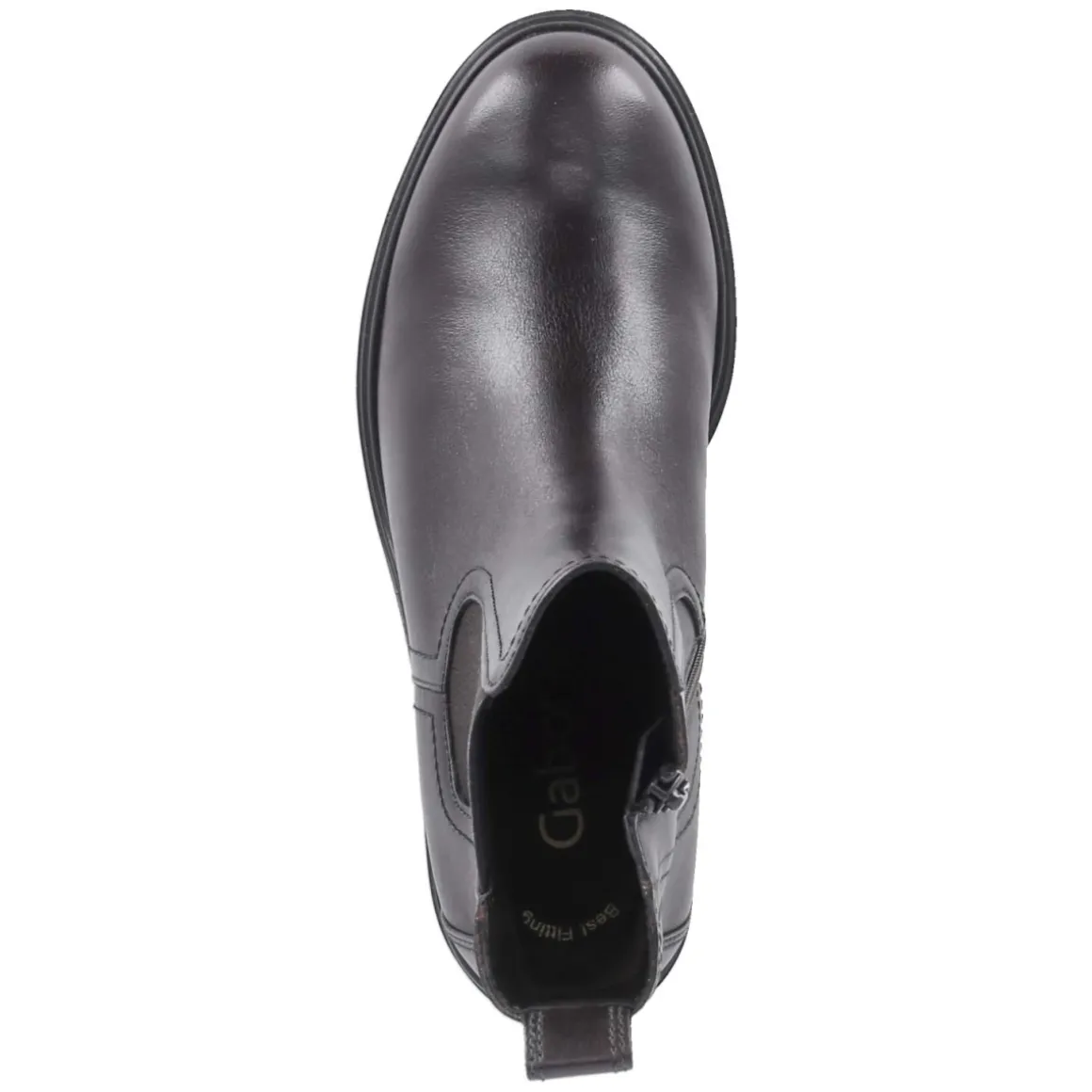Der Ankle Boot von Gabor verbindet zeitlose Eleganz mit alltagstauglichem Komfort. Glattes, langlebiges Echtleder in warmem Dunkelbraun umschließt den Fuß, die runde Spitze und die verstärkte Ferse sorgen für angenehmen Halt. Ein praktischer Reißverschluss erleichtert das Anziehen, während der Chelsea-Charakter mit großem Elastikeinsatz außen für Flexibilität steht. Der 6 cm hohe Blockabsatz streckt dezent und bleibt dank Profilsohle souverän und rutschhemmend. Innen bietet die textile Decksohle ein weiches Fußklima; das komfortable Wechselfußbett lässt sich bei Bedarf gegen eigene Einlagen tauschen. Die Passform fällt normal aus und begleitet zuverlässig durch Büro, Stadtbummel und Abendtermin. Modetipp: Ton-in-Ton mit Karamell- oder Beigetönen, etwa zu Midirock und Strickkleid, entsteht ein edler Monochrom-Look; alternativ setzt Raw-Denim einen lässigen Kontrast.