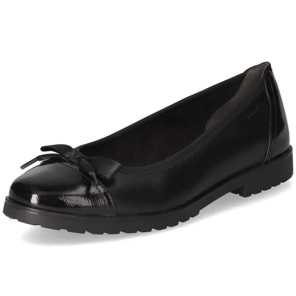 Zeitloser Begleiter für viele Anlässe: Der schwarze Tamaris-Ballerina überzeugt mit runder Spitze, schlanker Silhouette und einem 2,5‑cm-Blockabsatz, der den Fuß dezent anhebt und dennoch entspannt bleiben lässt. Robustes Echtleder als Obermaterial sorgt für eine wertige Haptik und langlebigen Tragekomfort, während die flexible Profilsohle den Schritt auf Stadtspaziergängen abfedert – ideal zum Bummeln oder für lange Tage im Büro. Die pflegeleichte Decksohle aus Synthetik und der bequeme Einstieg ohne Verschluss machen das Modell zur unkomplizierten Wahl. Die Passform fällt normal aus und lässt sich spielend in die Garderobe integrieren. Modetipp: Zur verkürzten Straight-Jeans und einem kastenförmigen Blazer entsteht ein moderner Kontrast, alternativ harmoniert ein fließender Midirock in gedeckten Tönen.