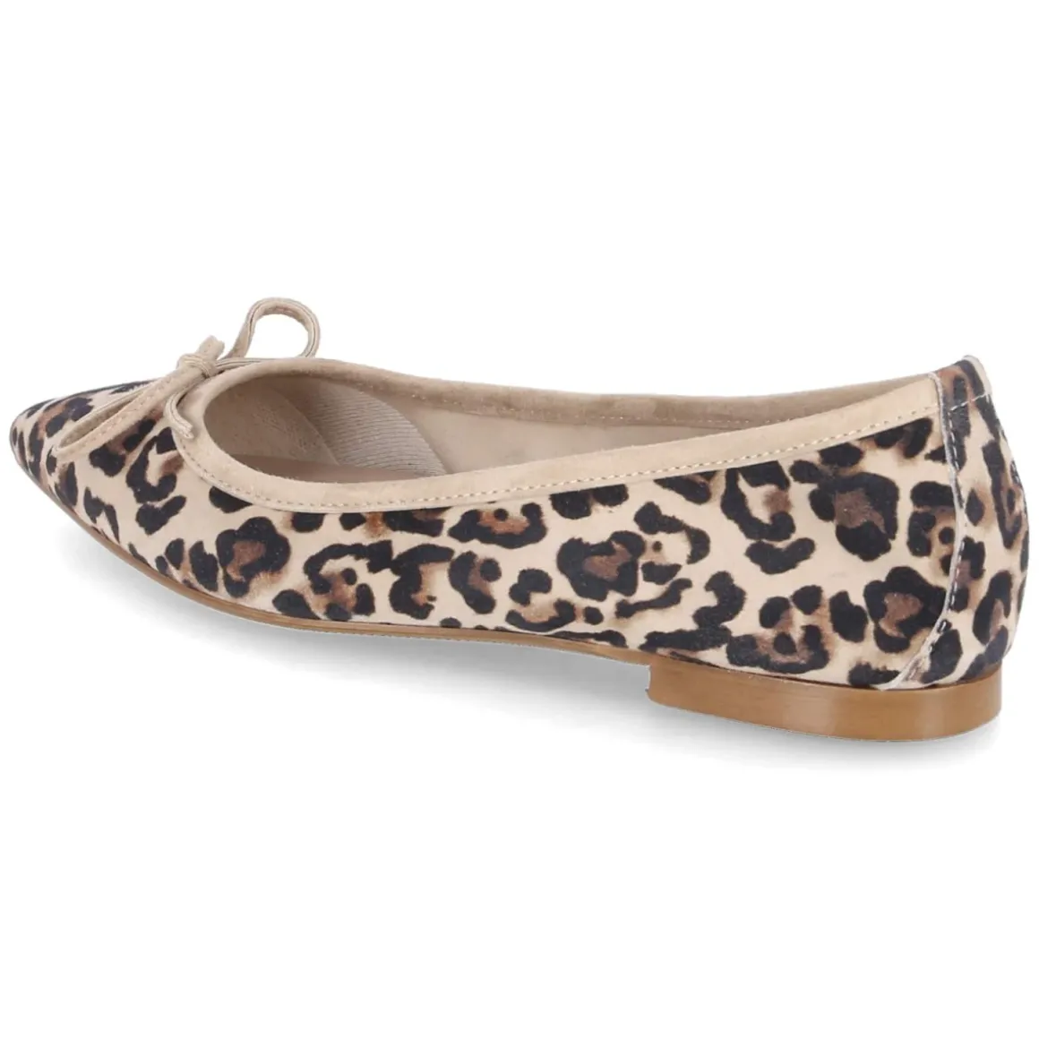 Der Ballerina von Kaerlek verbindet moderne Eleganz mit komfortabler Alltagstauglichkeit. Weiches Rauleder in Beige schmiegt sich geschmeidig an den Fuß, die spitz zulaufende Form streckt die Silhouette und setzt den Animal-Print im Leopard-Design stilvoll in Szene. Eine klassische Schleife akzentuiert den Zehenbereich, während die verstärkte Ferse Formstabilität und Halt verleiht. Dank Lederdecksohle überzeugt das Modell mit angenehmem Fußklima, die flexible, rutschhemmende Laufsohle bietet sicheren Tritt auf verschiedensten Untergründen. Das schlupffreundliche Design ohne Verschluss macht den Einstieg unkompliziert, die Passform fällt normal aus. So entsteht ein zeitloser Begleiter, der Büro- und Freizeitlooks gleichermaßen aufwertet. Modetipp: Besonders harmonisch wirkt das Modell zu schmaler Chino, feinem Strick und einem Trenchcoat in warmen Naturtönen.