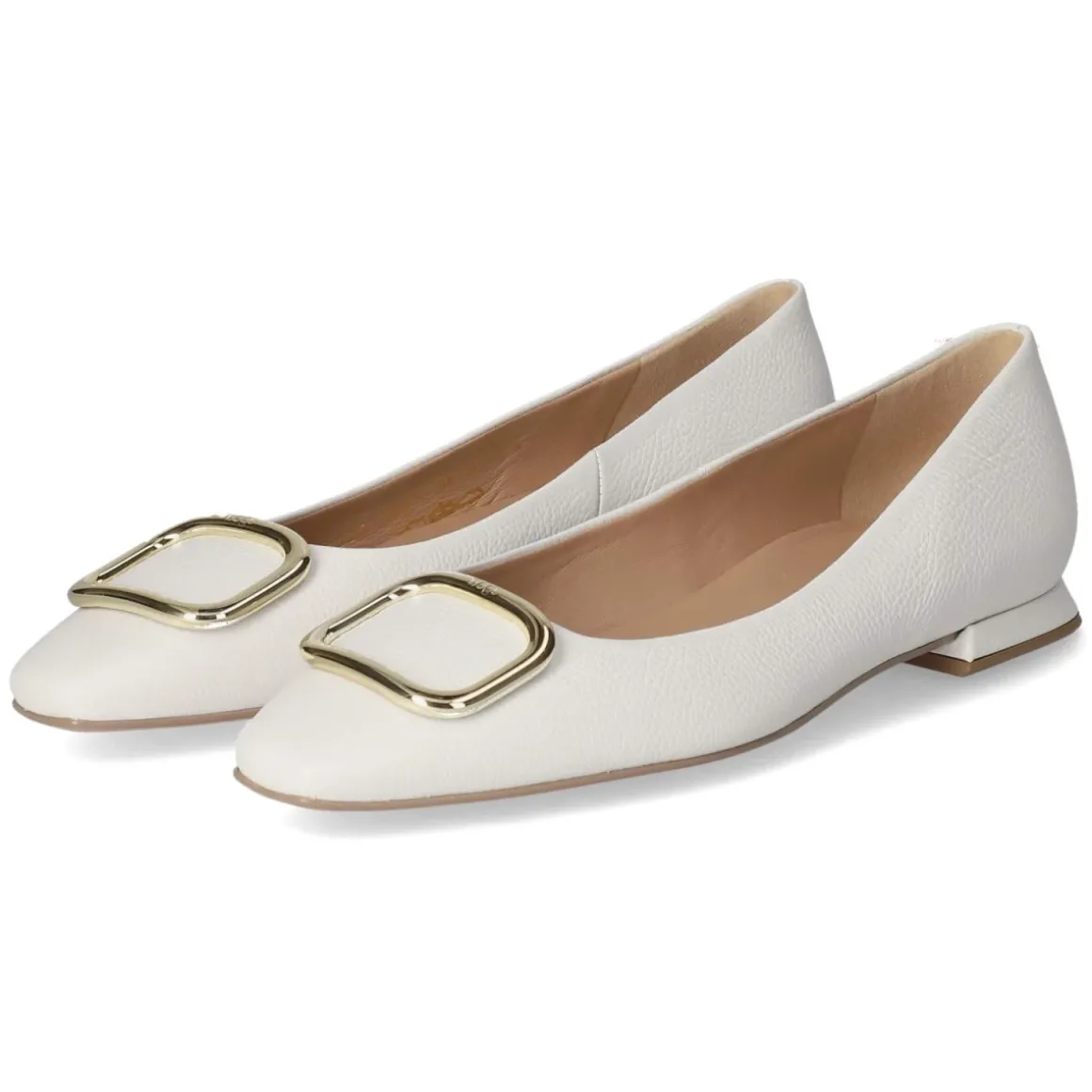 Eleganz und Komfort vereint: Dieser Damen-Ballerina von Högl setzt in strahlendem Weiß ein puristisches Statement. Robustes Glattleder formt eine klare Silhouette mit moderner Karree-Spitze, während goldfarbene Zierelemente und dezente Nähte einen feinen Akzent setzen. Die gepolsterte, hautfreundliche Lederdecksohle und das Innenfutter aus Leder sorgen für ein angenehm trockenes Fußklima – ideal für lange Tage im Büro und entspannte Stunden im Alltag. Ohne Verschluss gelingt das Hineinschlüpfen mühelos, die flexible Laufsohle unterstützt sanft jeden Schritt, die verstärkte Ferse hält die Form. Fällt normal aus. Modetipp: Besonders edel wirkt der Ballerina zu cremefarbenem Hosenanzug und feinem Goldschmuck, der die metallischen Details aufgreift.