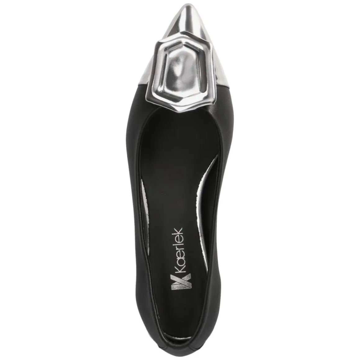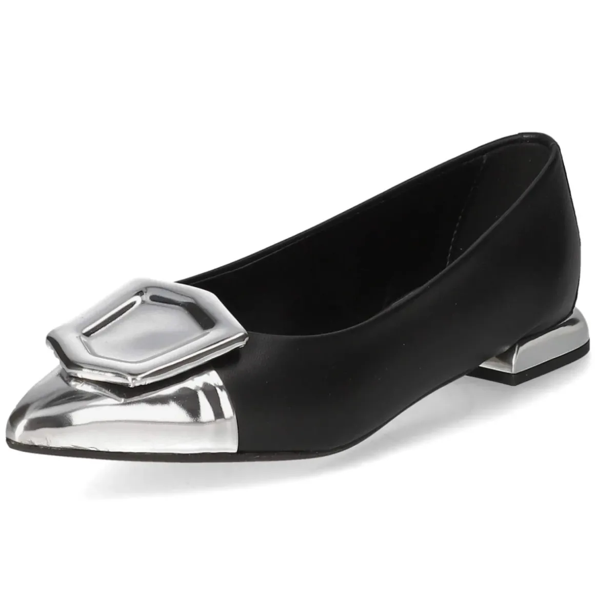 Die Kaerlek Ballerinas vereinen feminine Eleganz mit entspanntem Komfort. Das Modell aus hochwertigem Glattleder setzt mit spitzer Silhouette und silberfarbener Schuhspitze sowie Absatz einen edlen Akzent. Ein aufgesetztes, silberfarbenes Zierelement unterstreicht den modernen Look, während der 1,5 cm hohe Blockabsatz für Stabilität sorgt. Die atmungsaktive Echtlederverarbeitung und die hautfreundliche Lederdecksohle unterstützen ein angenehmes Klima im Schuh. Dank unkompliziertem Einstieg und geringem Gewicht gelingen schnelle Outfits im Alltag. Eine verstärkte Ferse erhöht die Formstabilität, die flexible Laufsohle sorgt für geschmeidigen Abrollkomfort. Das Modell für Damen fällt normal aus und begleitet Erwachsene stilsicher vom Büro bis zum Dinner. Modetipp: Zu cropped Stoffhose und feinem Strickpullover entfaltet die spitze Form ihre schlanke, elegante Wirkung.