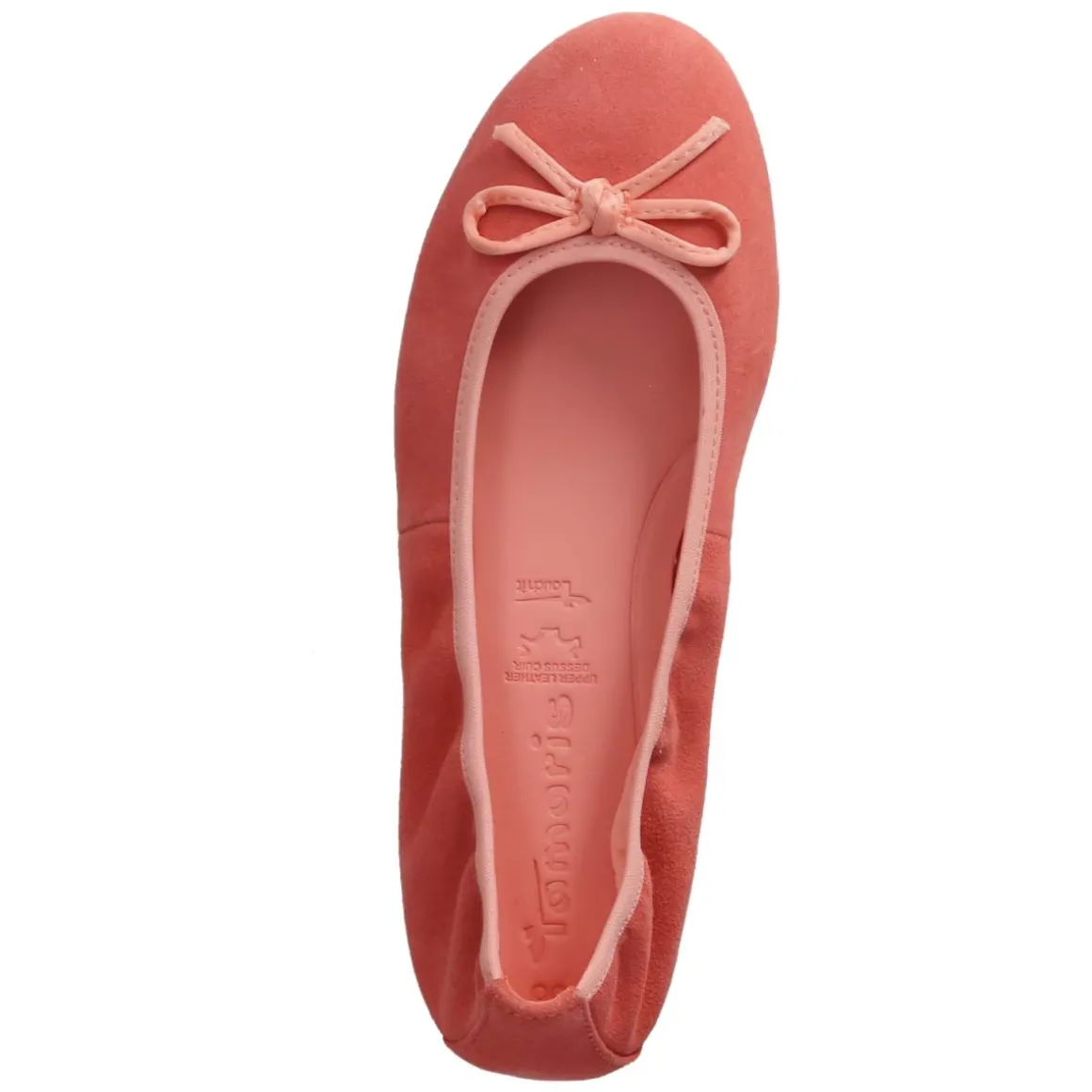 Als klassisches Modell von Tamaris setzen diese Ballerinas in leuchtendem Rot ein stilvolles Statement. Das Obermaterial aus Leder und Textil wirkt hochwertig, während der elastische, rosafarbene Einstieg für einen unkomplizierten Slip-on-Komfort sorgt. Die runde Schuhspitze, die zarte Zierschleife und die modisch verstärkte Ferse verbinden feminine Optik mit subtiler Stabilität. Ein gepolstertes Fußbett und die flexible Laufsohle unterstützen bequemes Gehen im Alltag, die Decksohle besteht aus Synthetik. Die Passform fällt normal aus und eignet sich für erwachsene Damen, die Vielseitigkeit schätzen – vom Büro bis zum Stadtbummel. Modetipp: Besonders stimmig zu weißen Jeans und maritimen Streifen, als kräftiger Farbakzent zu neutralen Tönen oder zu floralen Kleidern für einen frischen Kontrast.