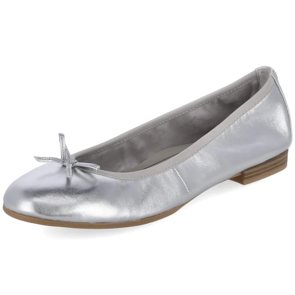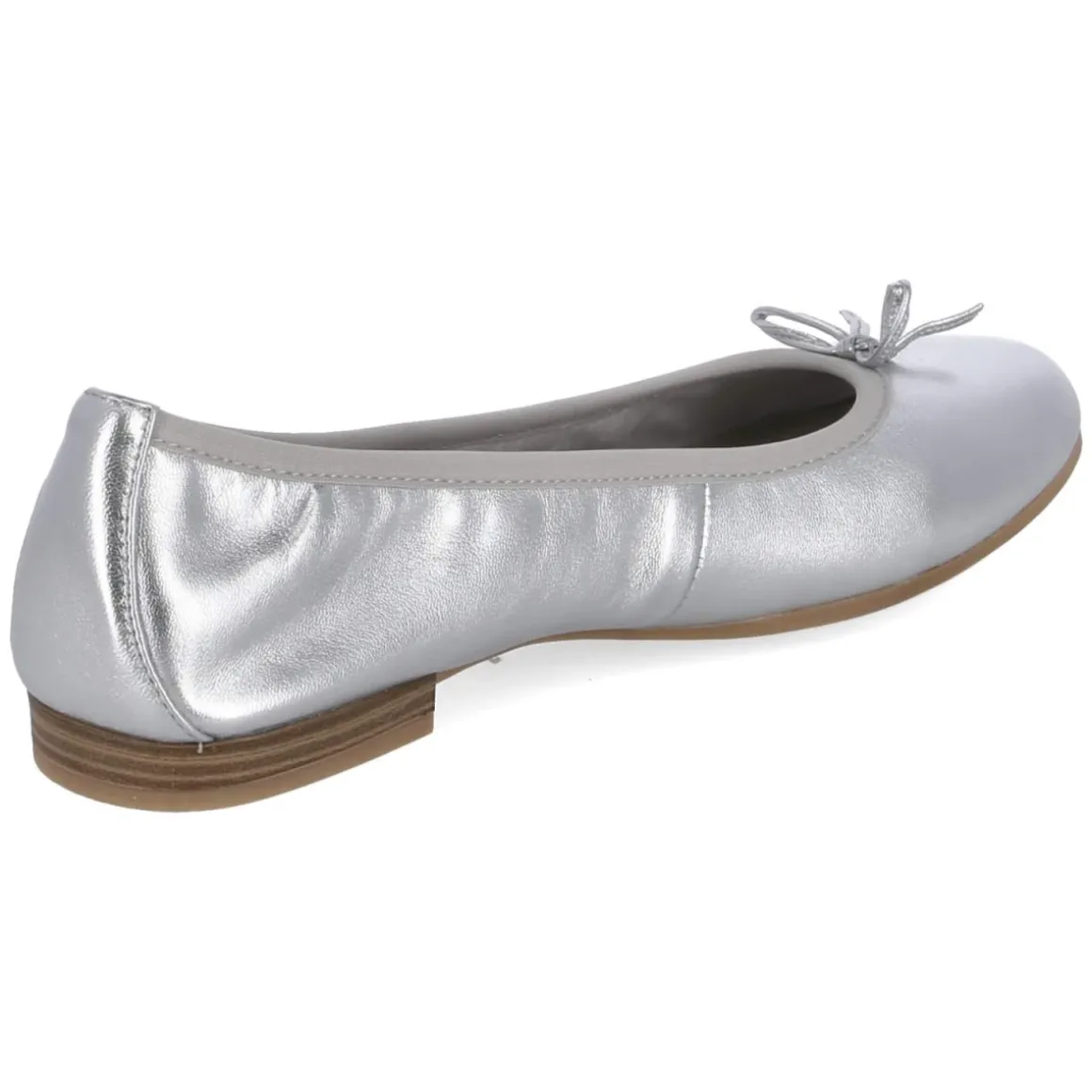 Diese Ballerinas von Tamaris verbinden festliches Funkeln mit zuverlässigem Komfort. Der silberne, metallische Glanz setzt elegante Akzente, während Zierschleife und runde Spitze die feminine Linienführung betonen. Langlebiges Echtleder als Obermaterial sorgt für eine edle Optik und formstabile Passform, die verstärkte Ferse gibt zusätzlichen Halt. Dank gepolstertem Fußbett mit weich unterlegter, synthetischer Decksohle bleibt der Auftritt auch nach vielen Stunden angenehm. Die flexible, rutschhemmende Laufsohle bietet Sicherheit auf glatten Böden, der schlupffreundliche Einstieg kommt ohne Verschluss aus. Der Größenhinweis fällt kleiner aus; häufig wird zur größeren Größe gegriffen. Ideal für Hochzeit, Gala oder gepflegte Alltagslooks, wenn dezenter Glanz gefragt ist. Modetipp: Besonders stimmig wirkt das Modell zu Satinkleidern, Cropped-Hosen und Schmuck in Silbernuancen.