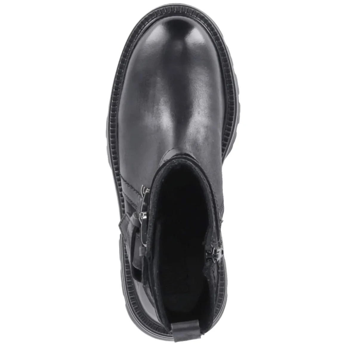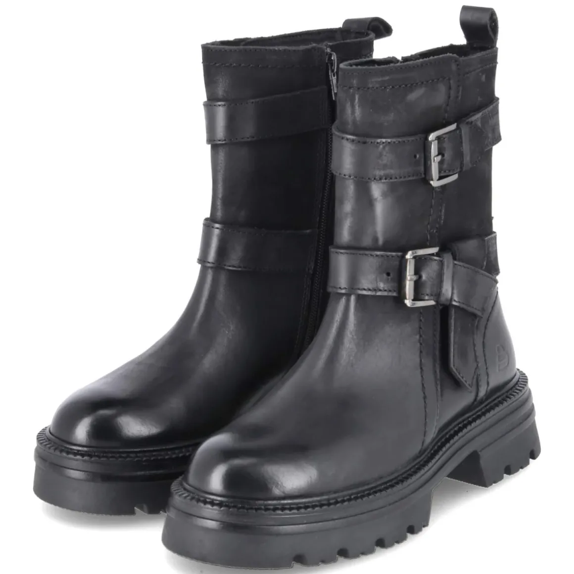 Die Bullboxer Biker Boots interpretieren den Klassiker mit urbaner Klarheit: Schwarzes Glattleder in langlebiger Qualität trifft auf runde Spitze, verstärkte Ferse und eine markante Chunky-Sohle mit rutschfestem Profil. Der 5‑cm‑Blockabsatz bietet stabilen Stand, während der seitliche Reißverschluss einen bequemen Einstieg ermöglicht. Ein gepolstertes Fußbett mit synthetischer Decksohle unterstützt den Komfort im Alltag. Der Schaft misst ca. 19 cm in der Höhe und ca. 24 cm im Umfang; zwei Riemen mit Schnalle akzentuieren den Look, eine Anziehlasche erleichtert das Hineinschlüpfen. Die Passform fällt normal aus und begleitet vielseitig durch die Saison – vom Office bis zur Weekend‑Tour. Modetipp: Zu verwaschener Mom‑Jeans, weißem Tee und Oversize‑Blazer entsteht ein balancierter Mix aus rauem Biker‑Charakter und cleaner City‑Eleganz.
