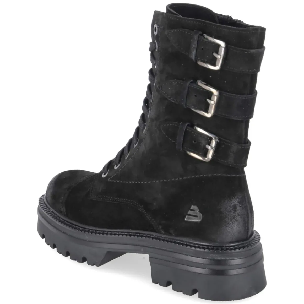 Die Bullboxer Biker Boots bringen lässigen Used-Look und durchdachten Komfort zusammen. Rauleder aus langlebigem Echtleder bildet die markante Basis, Ziernähte und Toe Cap unterstreichen den robusten Charakter. Drei Riemen mit Schnalle am hinteren Schaft setzen einen rockigen Akzent. Der 5 cm hohe Blockabsatz harmoniert mit der rutschfesten Profilsohle für stabilen Halt auf urbanem Terrain. Schnürsenkel sorgen für individuelle Anpassung, der zusätzliche Reißverschluss erleichtert den Einstieg. Ein gepolstertes Fußbett unterstützt angenehm durch längere Tage, die runde Schuhspitze gewährt Zehenfreiheit. Fällt normal aus und passt zu vielseitigen City-Looks. Modetipp: Mit schwarzer Skinny-Jeans, Oversize-Blazer und Leder-Accessoires entsteht ein moderner Mix aus Eleganz und Biker-Attitüde.