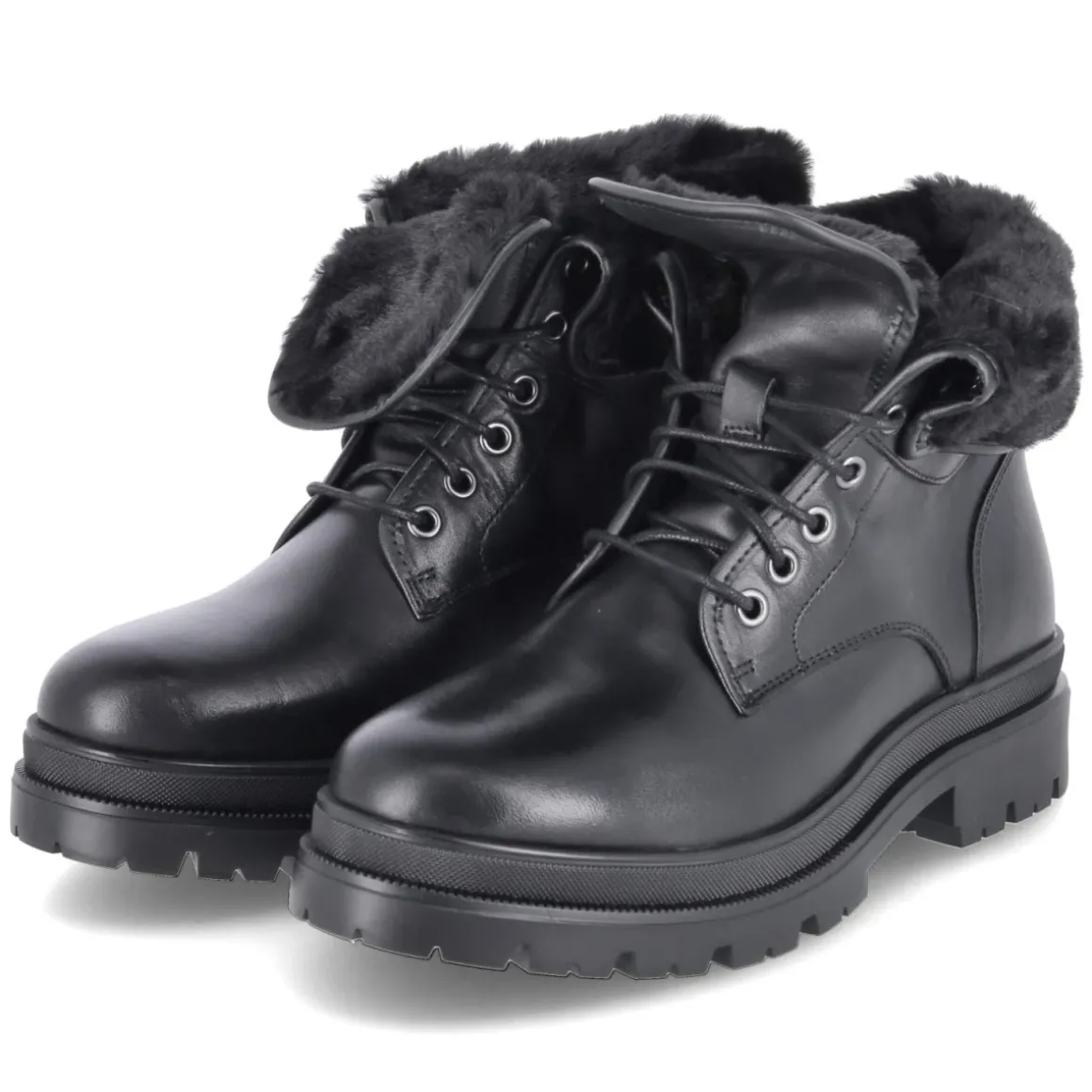 Die Boots von Fräulein Frida verbinden urbane Lässigkeit mit robusten Details: Langlebiges Echtleder in schwarzem Glattleder-Finish, eine moderne Optik und der 4-cm-Blockabsatz sorgen für souveränen Auftritt im Alltag. Die runde Spitze und die Schnürung bieten angenehmen Platz und variable Anpassung, während das leichte Futter an kühlen Tagen wärmt. Eine rutschfeste Profilsohle gibt Halt auf glatten Wegen, der verstärkte Fersenbereich stabilisiert den Schritt. Praktisch und stilvoll zugleich präsentiert sich die Umschlagkrempe mit weichem Kunstfell, die je nach Look hochgeschlagen oder umgelegt getragen werden kann. Die Decksohle aus Synthetik ist pflegeleicht, der Größenhinweis fällt normal aus und macht die Wahl unkompliziert. Modetipp: Mit Wollmantel in Camel, Strickkleid und blickdichter Strumpfhose entsteht ein zeitloser City-Look.