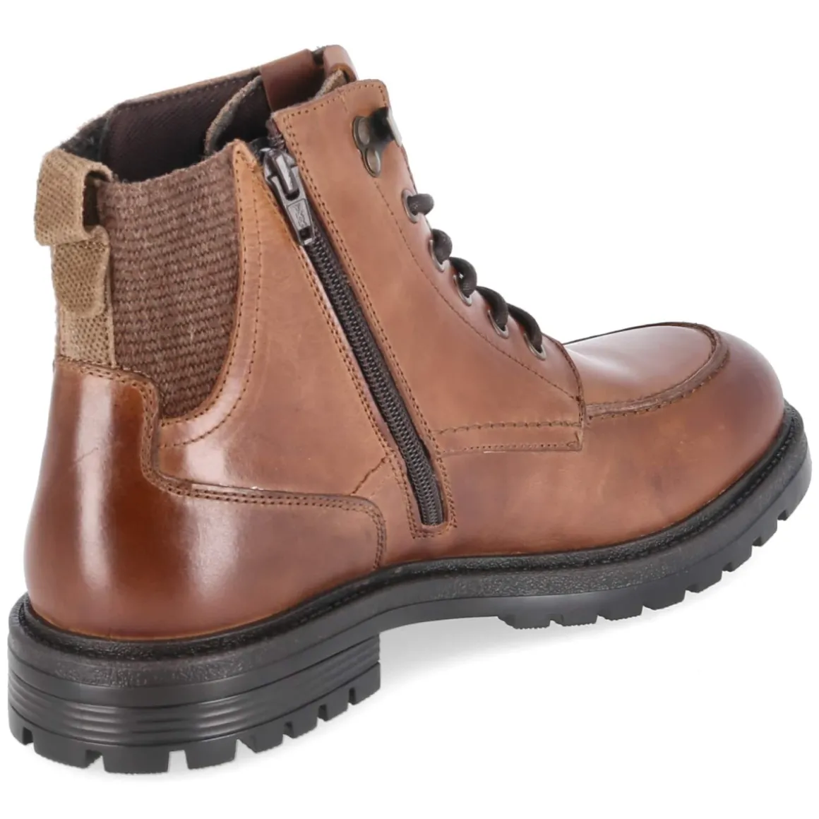 Der Herren-Boot von Bullboxer kombiniert robustes Design mit alltagstauglichem Komfort. Das braune Glattleder aus langlebigem Echtleder zeigt eine ruhige, klassische Linie mit runder Spitze, während die markante Wulstnaht auf dem Schuhdeck einen wertigen, handwerklichen Akzent setzt. Der 3 cm hohe Blockabsatz sorgt für Stabilität, die rutschhemmende Profilsohle für verlässlichen Grip. Schnürsenkel und zusätzlicher Reißverschluss erleichtern den Einstieg, unterstützt von Anziehlasche und Elastikeinsatz über dem verstärkten Fersenbereich. Innen bietet die textile Decksohle angenehmes Tragegefühl; das komfortable Wechselfußbett lässt sich bei Bedarf einfach wechseln. Der Boot fällt größengetreu aus und fügt sich mühelos in smarte wie lässige Looks. Modetipp: Mit Raw-Denim, kariertem Overshirt und klassischem Wollmantel in Camel wirkt der Schuh besonders modern.
