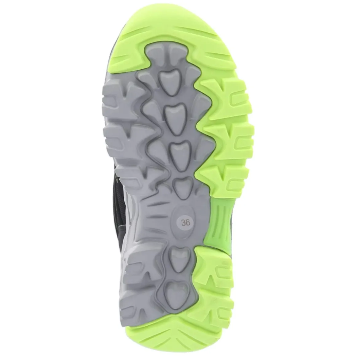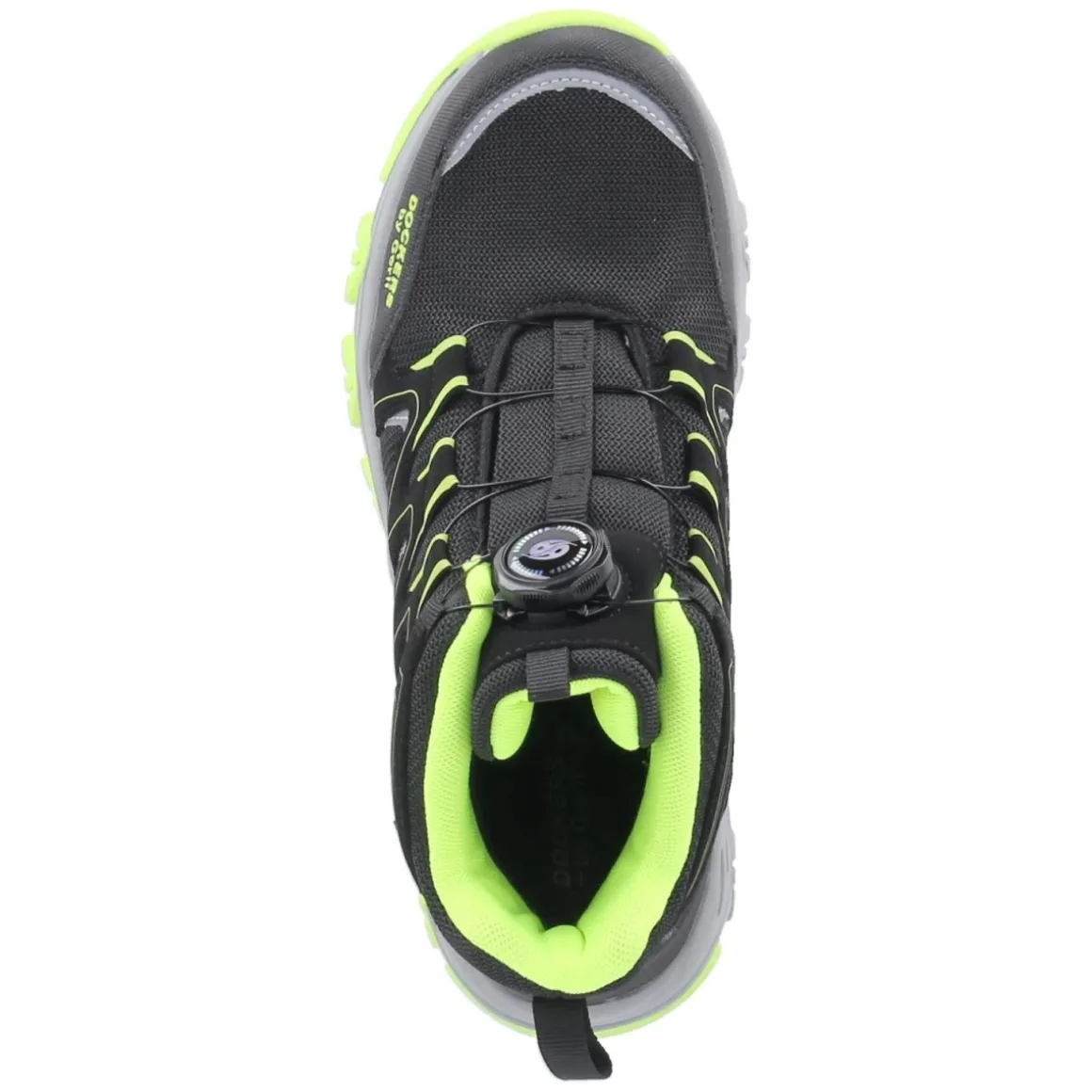 Sportliche Kinder-Boots von Dockers in Schwarz mit neongelben Akzenten setzen ein dynamisches Statement auf Schulweg und Spielplatz. Das Obermaterial aus Textil und Synthetik ist wasserfest und wasserabweisend, zugleich atmungsaktiv, sodass kleine Füße auch an wechselhaften Tagen angenehm trocken bleiben. Ein kinderleichter Drehverschluss sorgt für schnellen Einstieg, unterstützt von Anziehlasche, gepolstertem Einstieg und einer runden, komfortablen Kappe. Leichtes Futter wärmt an kühlen Tagen, die textile Decksohle trägt sich weich. Reflektierende Details erhöhen die Sichtbarkeit bei Dämmerung, während verstärkte Fersen- und Zehenbereiche zusätzliche Stabilität geben. Die flexible Profilsohle mit rutschfesten Elementen bietet zuverlässigen Grip. Der Schnitt fällt normal aus und punktet mit sportlichem Design. Modetipp: Zu Softshellhose und gesteppter Parka entsteht ein funktionales Outfit; neongelbe Accessoires greifen die Details stimmig auf.
