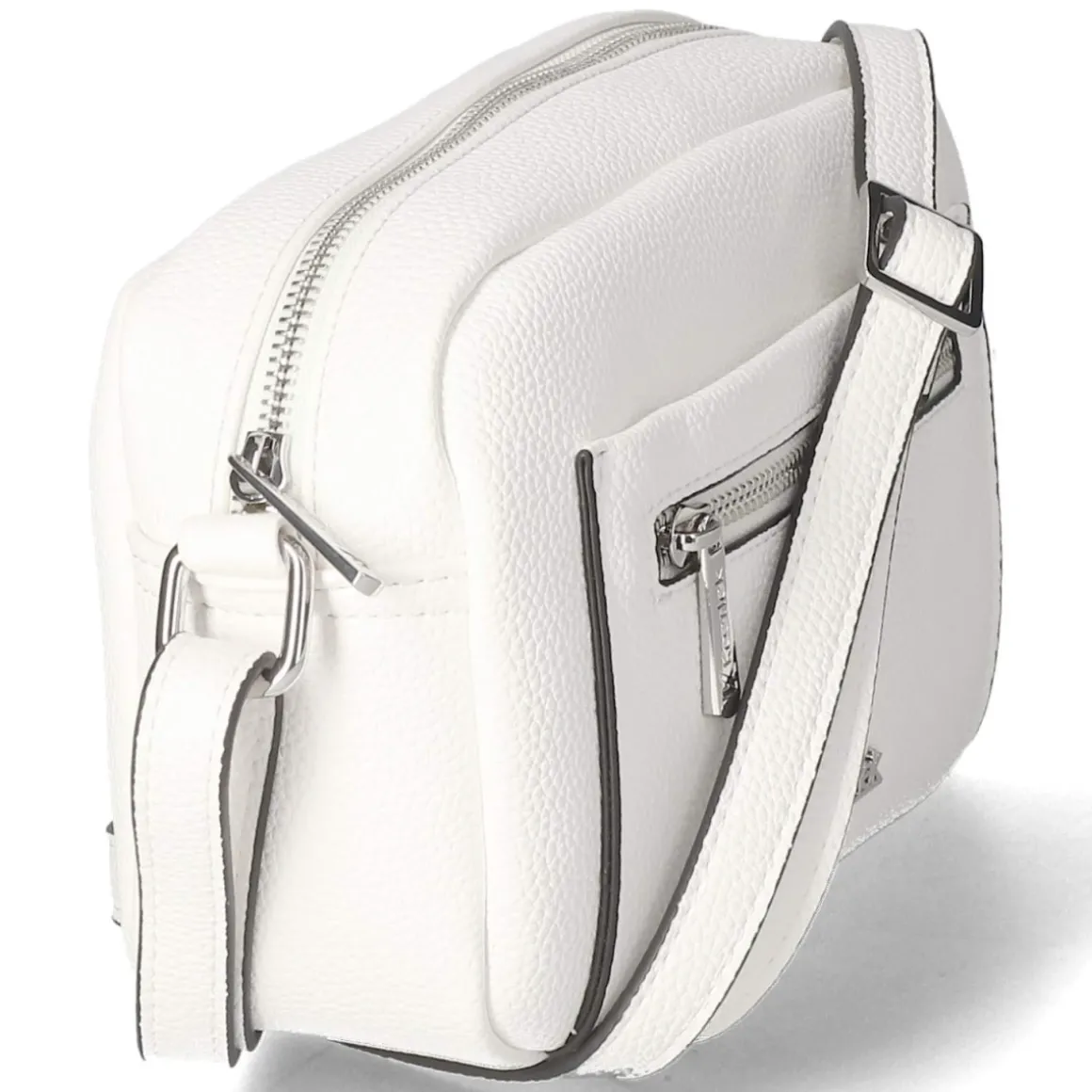Die weiße Camera Bag setzt auf klare Linien und kompakten Komfort. Mit ca. 15 x 21 x 7 cm und rund 2 Litern Volumen bewahrt sie Essentials übersichtlich auf, ohne aufzutragen. Ein Reißverschluss sichert das Hauptfach, innen ergänzen ein Steckfach und ein weiteres Reißverschlussfach die Organisation. Außen sorgt eine durchdachte Einteilung mit vorderem Steckfach, zusätzlichem Frontfach mit Zipper und einem rückseitigen Reißverschlussfach für schnellen Zugriff. Der verstellbare Schultergurt mit ca. 150 cm Länge ermöglicht entspanntes Crossbody-Tragen oder lässig über der Schulter. Das strahlende Weiß verleiht Outfits eine frische Note und hebt die klare Silhouette hervor. Modetipp: Zu monochromen Looks in Creme bis Sand und minimalistischen Sneakern getragen entsteht ein moderner Ton-in-Ton-Effekt.