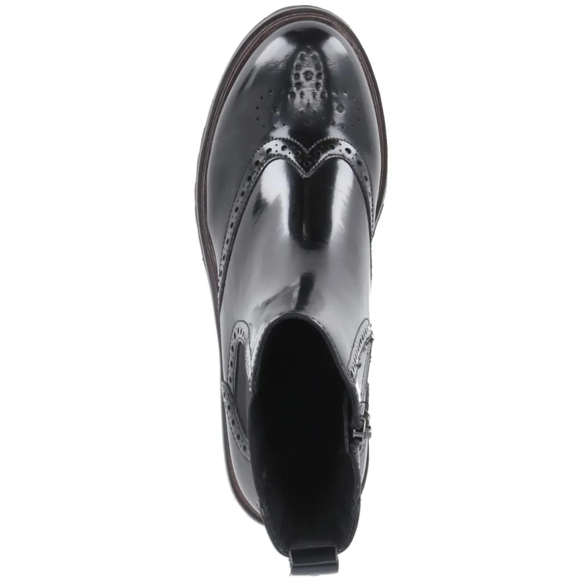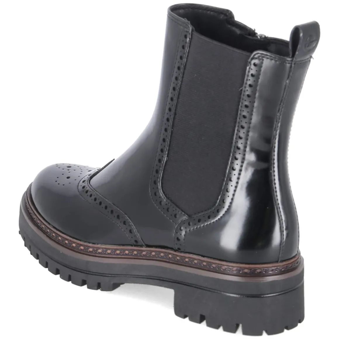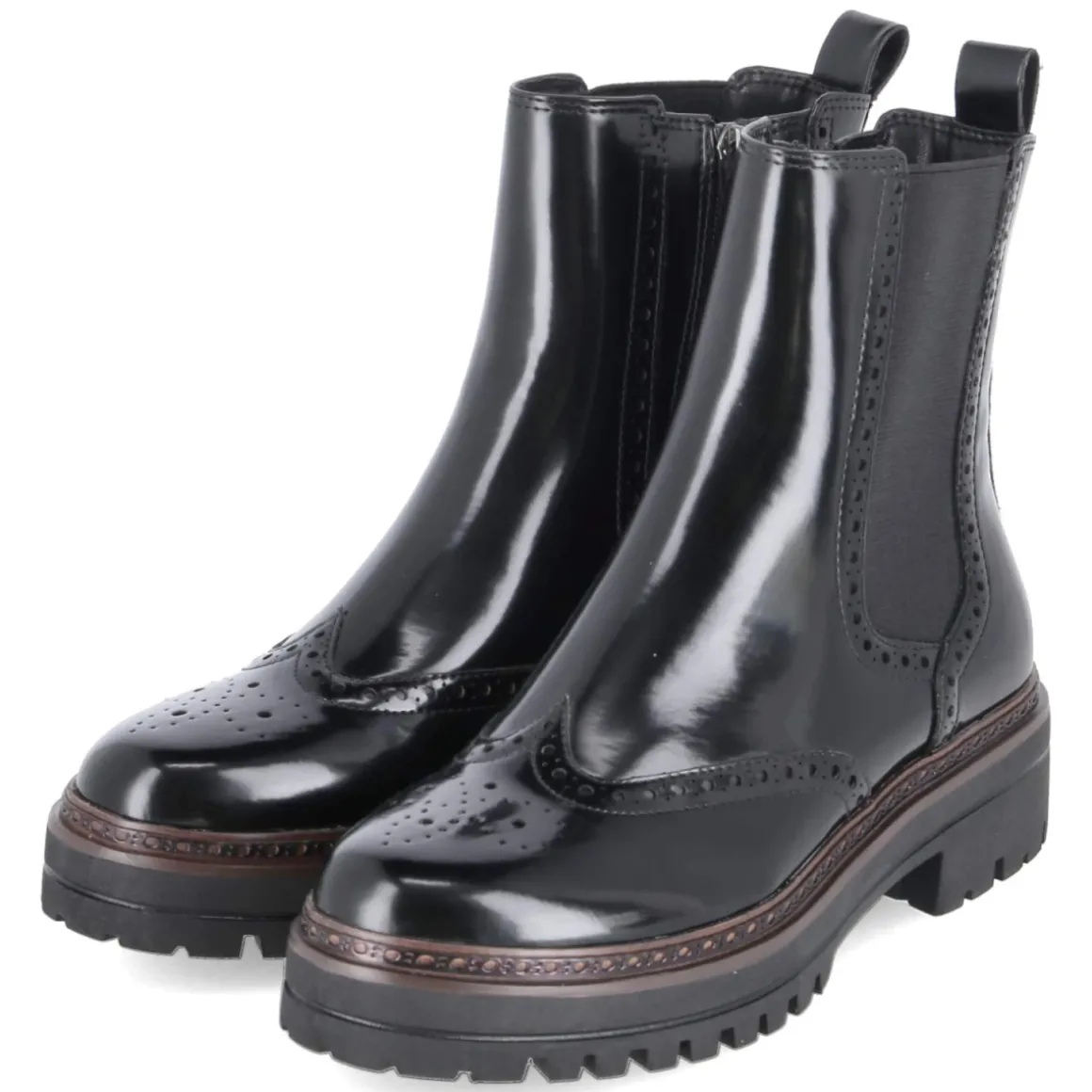 Eleganter Auftritt mit Komfortgarantie: Die Chelsea Boots von Tamaris in schwarzer Lackoptik kombinieren klassisches Design mit modernem Tragegefühl. Budapester Lochmuster verleiht dem runden Leisten eine stilvolle Note, während der 5-cm-Blockabsatz stabilen Halt bietet. Der seitliche Reißverschluss ermöglicht einen bequemen Einstieg, unterstützt von großem Elastikeinsatz und zwei Anziehlaschen. Das beste Memory-Foam-Fußbett dämpft jeden Schritt, die Textildecksohle schmiegt sich weich an, und die flexible, rutschfeste Profilsohle sorgt für sicheren Grip. Verstärkte Fersen- und Zehenbereiche erhöhen die Formstabilität. Das Modell fällt normal aus und punktet mit langlebigem Synthetik-Obermaterial. Modetipp: Perfekt zu verkürzter Anzughose und feinem Rollkragen, dazu ein strukturierter Wollmantel für einen souveränen City-Look mit subtiler Retro-Note.