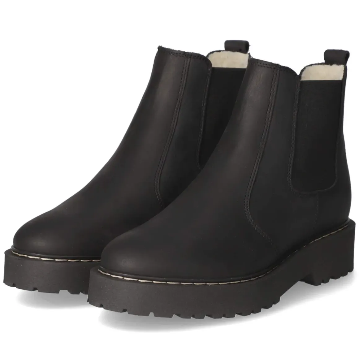 Der Chelsea Boot von Fräulein Frida verbindet zeitlose Eleganz mit funktionaler Wärme. Schwarzes Glattleder in hochwertiger Verarbeitung umschließt den Fuß mit atmungsaktivem Echtleder, während ein angenehm weiches Warmfutter an kalten Tagen verlässlich schützt. Der unkomplizierte Einstieg gelingt dank Anziehhilfe und den zwei seitlichen Elastikeinsätzen im Handumdrehen. Ein 3,5 cm hoher Blockabsatz sorgt für stabilen Stand, die rutschfeste Sohle gibt Sicherheit auf glatten Untergründen. Die runde Schuhspitze, die textile Decksohle und der verstärkte Zehen- und Fersenbereich erhöhen den Tragekomfort im Alltag. Ohne Verschluss, in klassischem Schwarz und mit normaler Passform wird dieses Modell schnell zum vielseitigen Favoriten für erwachsene Damen. Modetipp: Mit schmaler Denim, grobem Strickpullover und Oversize-Wollmantel entsteht ein urbaner Look, der lässige Nonchalance und gepflegte Modernität vereint.