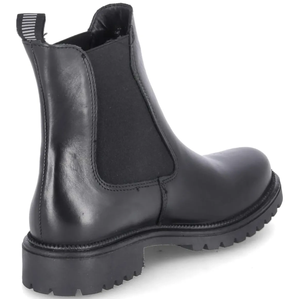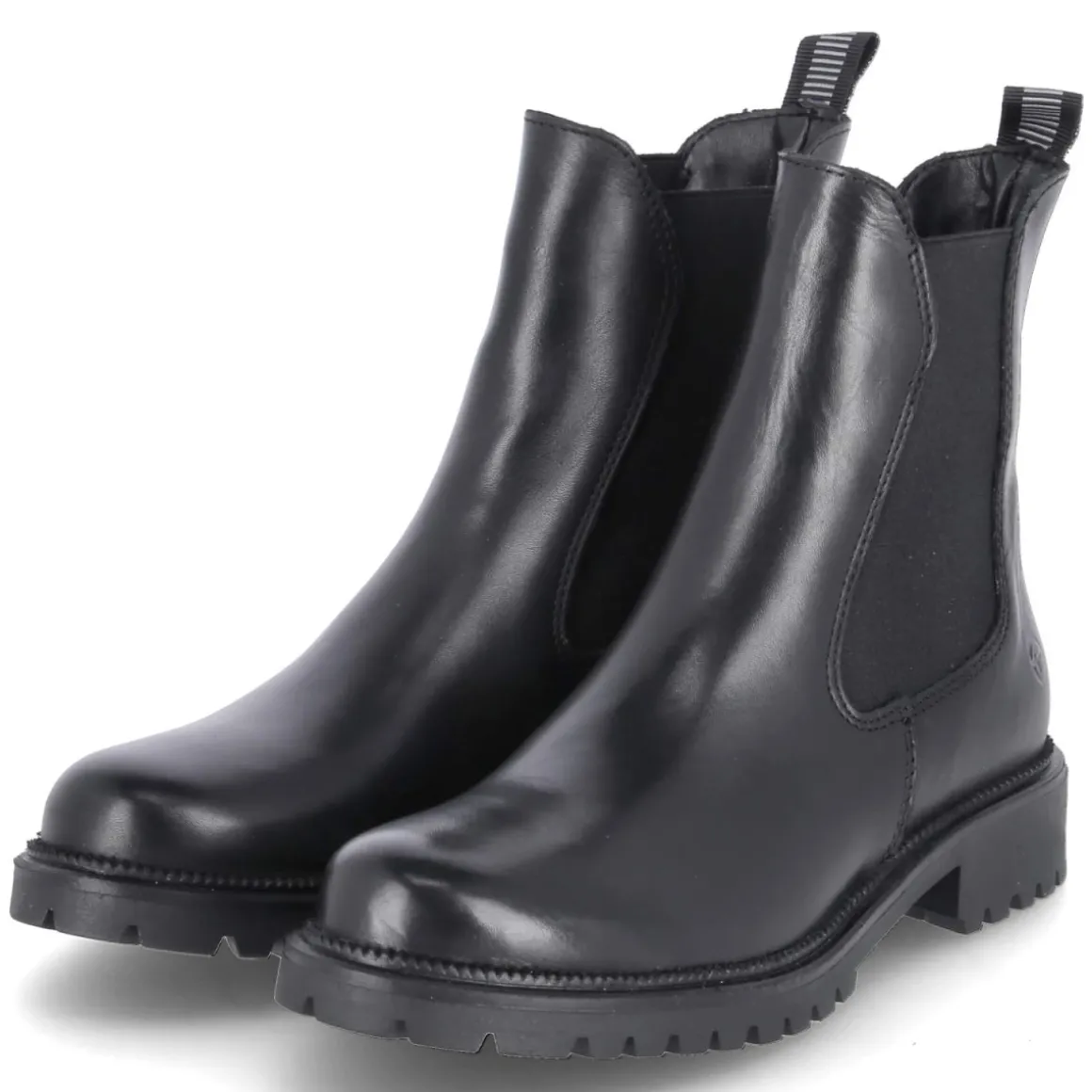 Zeitloser Klassiker mit komfortabler Note: Der Tamaris Chelsea Boot für Damen verbindet puristische Linien mit einem robusten Material-Mix aus Leder und Textil. Das leicht wärmende Warmfutter und die weiche Textildecksohle bieten angenehmen Komfort an kühlen Tagen. Dank unkompliziertem Einstieg ohne Verschluss und elastischen Einsätzen sitzt der Boot sicher und flexibel. Der 3,5 cm hohe Blockabsatz sorgt für Stabilität und ein entspanntes Laufgefühl, die runde Spitze komplettiert den cleanen Look in Schwarz. Fällt normal aus und begleitet souverän durch Büro, City und Wochenendmomente. Die sorgfältige Verarbeitung unterstreicht die langlebige Anmutung dieses Allrounders. Modetipp: Zu Cropped-Jeans oder Culottes und einem strukturierten Wollmantel entsteht ein moderner Kontrast; Stricksocken in Ton-in-Ton-Optik setzen einen subtilen Akzent.