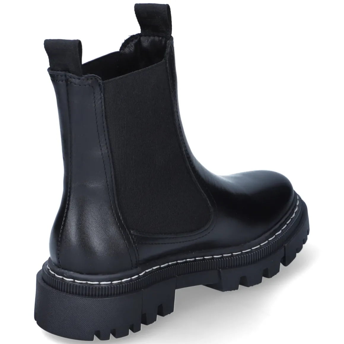 Diese Chelsea Boots von Tamaris interpretieren den Klassiker in zeitlos schwarzem Glattleder. Das langlebige Echtleder schmiegt sich formstabil an und erhält durch zwei große, seitliche Elastikeinsätze den typischen Look. Zwei Anziehlaschen erleichtern das Hineinschlüpfen, der Verzicht auf Verschluss sorgt für puren Komfort. Ein 4 cm hoher Blockabsatz und die rutschfeste Profilsohle bringen zuverlässigen Halt, während die runde Spitze und die textile Decksohle ein angenehmes Tragegefühl fördern. Das komfortable Wechselfußbett lässt sich bei Bedarf austauschen oder durch eigene Einlagen ersetzen. Elastikeinsatz am Schaft und sorgfältige Verarbeitung machen dieses Paar zum vielseitigen Begleiter im Alltag und im Büro. Modetipp: Zu Cropped-Jeans und Wollmantel entsteht ein moderner Kontrast; mit Midikleid und blickdichten Strümpfen wirken die Boots besonders elegant.