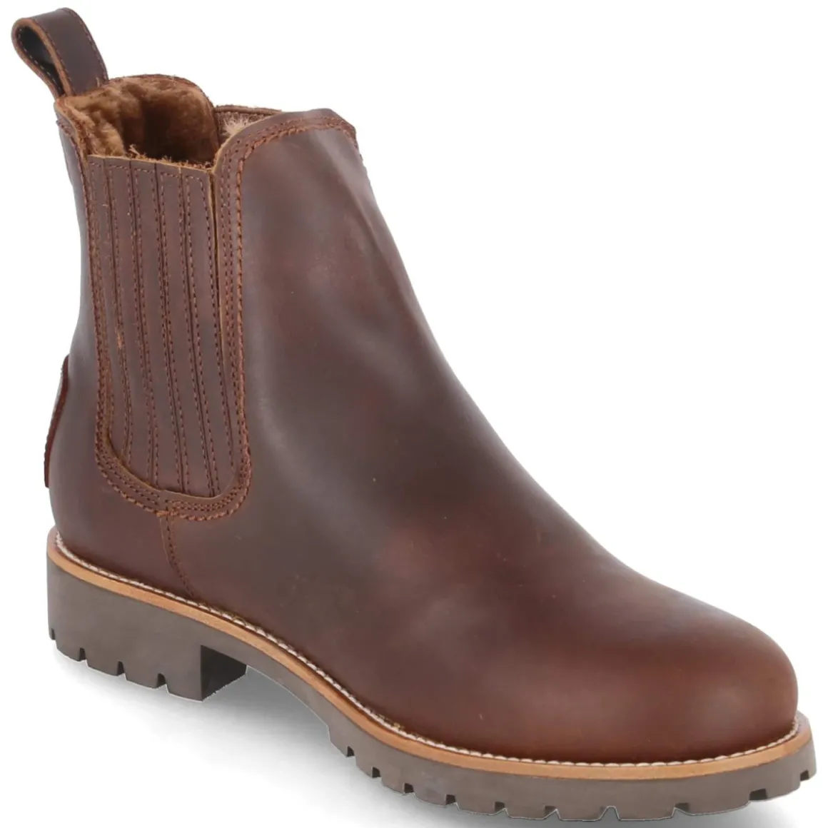 Chelsea-Boots BRIGITTE IGLOO von Panama Jack vereinen robusten Charakter mit urbaner Eleganz. Gefertigt aus braunem Leder, wasserfest und atmungsaktiv, liefern sie dank warmem Lammfellfutter angenehme Wärme an kalten Tagen. Der slip-on Komfort mit stretchigem Einstieg und Anziehlasche erleichtert den Alltag, während 3 cm Blockabsatz und runde Spitze eine entspannte Silhouette formen. Die flexible, vernähte und rutschhemmende Laufsohle sowie der verstärkte Fersenbereich mit Markenpatch sorgen für Stabilität. Wechselfußbett und lederne Decksohle unterstützen den Tragekomfort; die Passform fällt normal aus. Das klassische Design macht den Stil vielseitig. Modetipp: Zu schmaler Denim, grobem Strick und Kamelmantel kombinieren; alternativ zu Midikleid und blickdichter Strumpfhose in Creme oder Oliv akzentuieren.