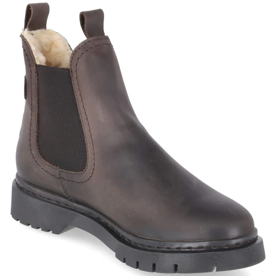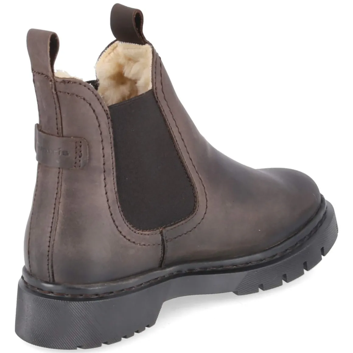 Zeitloser Stil trifft auf funktionale Details: Der Damen-Chelsea-Boot von Tamaris präsentiert sich in einem warmen Braunton und setzt auf ein wetterfestes Obermaterial aus weichem Rauleder. Das kuschelige Warmfutter macht kalte Tage angenehmer, während die textile Decksohle zusammen mit dem herausnehmbaren Wechselfußbett für anpassbaren Komfort sorgt – auch mit individuellen Einlagen. Zwei große, seitliche Elastikeinsätze und zwei Anziehlaschen ermöglichen einen unkomplizierten Einstieg; die verstärkte Ferse gibt zusätzliche Stabilität. Mit rund zulaufender Spitze und 3,5 cm hohem Blockabsatz bietet der Boot einen sicheren Auftritt. Die flexible, rutschfeste Profilsohle liefert Halt auf glatten Untergründen. Die Passform fällt normal aus. Modetipp: Zu geradem Denim, Wollmantel und Feinstrick wirkt der Chelsea klassisch, zum Midikleid und Strumpfhose entsteht ein moderner Kontrast.