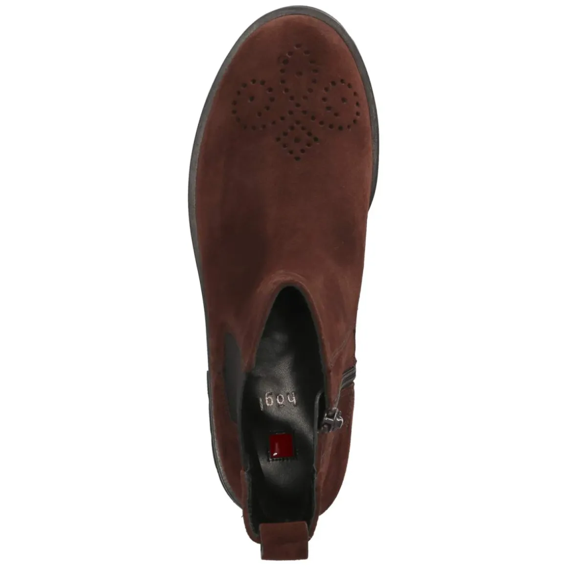 Der braune Chelsea Boot von Högl interpretiert den Klassiker mit dezenter Eleganz und funktionalen Details. Weiches Rauleder in langlebigem Echtleder trifft auf eine runde Schuhspitze und ein gelochtes Schuhdeck, das dem Obermaterial Struktur verleiht. Der 3 cm hohe Blockabsatz sorgt für entspanntes Gehen im Alltag, während die flexible, rutschhemmende Laufsohle sicheren Tritt bietet. Reißverschluss und Elastikeinsatz am Schaft erleichtern das An- und Ausziehen, unterstützt von einer praktischen Anziehlasche. Innen verwöhnt eine Lederdecksohle mit gepolstertem Fußbett, der verstärkte Zehen- und Fersenbereich erhöht die Formstabilität. Das Modell fällt normal aus und richtet sich an erwachsene Damen, die Wert auf Komfort und Wertigkeit legen. Modetipp: Zu einer verkürzten Straight-Leg-Jeans und einem wolligen Camel-Mantel entfalten die Boots ihre zeitlose Wirkung.