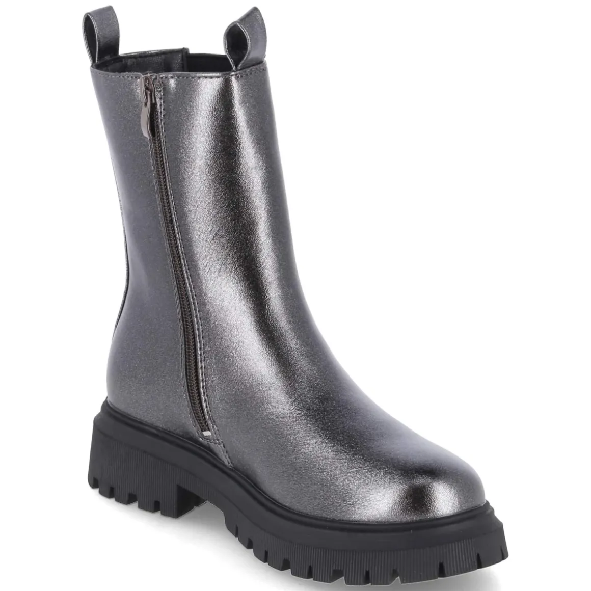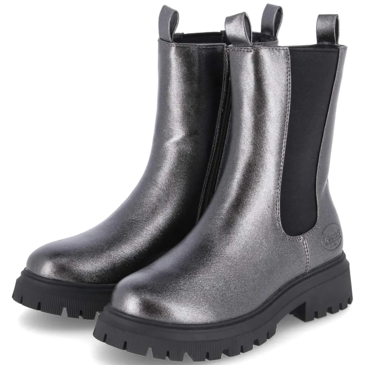 Diese Chelsea Boots von Dockers vereinen lässigen Look mit kindgerechtem Komfort. Das graue Obermaterial aus Textil und Synthetik zeigt einen dezenten metallischen Schimmer, der Outfits subtil aufwertet. Die runde Schuhspitze und der 4 cm hohe Blockabsatz sorgen für sicheren Stand, während die gepolsterte Decksohle und das leichte, weiche Fleecefutter an kühlen Tagen angenehm wärmen. Ein bequemer Reißverschluss-Einstieg und der elastische Einsatz erleichtern das An- und Ausziehen, die verstärkte Ferse unterstützt kleine Schritte. Eine rutschfeste, robuste Profilsohle bietet zuverlässigen Grip auf unterschiedlichen Böden. Das Modell fällt normal aus und punktet mit pflegeleichter Oberfläche. Modetipp: Ton in Ton zu grauen Strickleggings und einer gesteppten Jacke kombinieren, damit der metallische Schimmer zum ruhigen Highlight wird.