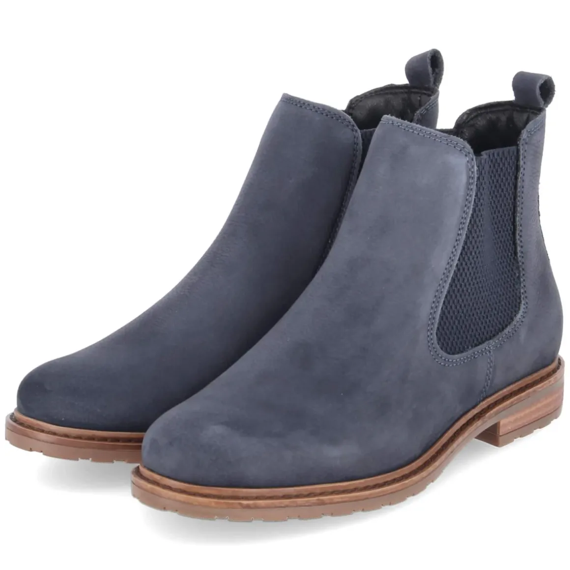 Der Tamaris Chelsea Boot in Blau zeigt eine zeitlose Silhouette mit runder Spitze und 2,5 cm hohem Blockabsatz, die Eleganz und Alltagstauglichkeit vereint. Hochwertiges Rauleder aus langlebigem Echtleder verleiht dem Modell eine edle Struktur, während das relaxtes Leichtgewicht den Tragekomfort den ganzen Tag über spürbar macht. Das leichte Futter wärmt dezent an kühleren Tagen, die Decksohle aus Textil fühlt sich angenehm an. Dank verstärkter Ferse bleibt der Halt stabil, die flexible, rutschfeste Laufsohle sorgt für sicheren Schritt auf glatten Wegen. Als Chelsea-Design ohne Verschluss bietet der Schaft einen bequemen Einstieg und sitzt formschön am Knöchel. In Dunkelblau lässt sich der Boot vielseitig kombinieren und fällt größengetreu normal aus. Modetipp: Mit dunkelblauer Strickjacke, Cropped-Flare-Jeans und einer Schultertasche in Cognac entsteht ein moderner Monochrom-Look mit warmem Akzent.