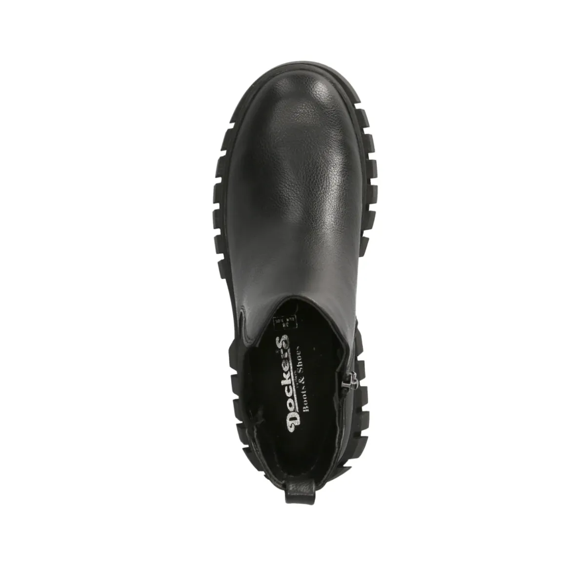 Die Chelsea Boots von Dockers für Damen setzen auf eine klare, zeitlose Linie in tiefem Schwarz und überzeugen mit einem modernen Material-Mix aus Textil und Synthetik. Warmfutter und angenehm weiche Textildecksohle sorgen für ein wohliges Tragegefühl an kühlen Tagen, während die runde Schuhspitze und der elastische Einsatz am Schaft Bewegungsfreiheit bieten. Der 4,5 cm hohe Blockabsatz gibt sicheren Stand und streckt dennoch dezent die Silhouette. Praktisch ist der bequeme Reißverschlußeinstieg, der das An- und Ausziehen im Alltag erleichtert. Dank Größenhinweis fällt das Modell normal aus und lässt sich unkompliziert einplanen. Diese Boots verbinden Funktion und Stil auf smarte Weise und begleiten zuverlässig durch urbane Looks von morgens bis abends. Modetipp: Zu Strickkleid in Midi-Länge und feiner Strumpfhose kombinieren, dazu ein Wollmantel – so entsteht ein eleganter City-Look mit modernem Twist.
