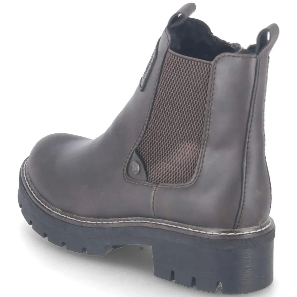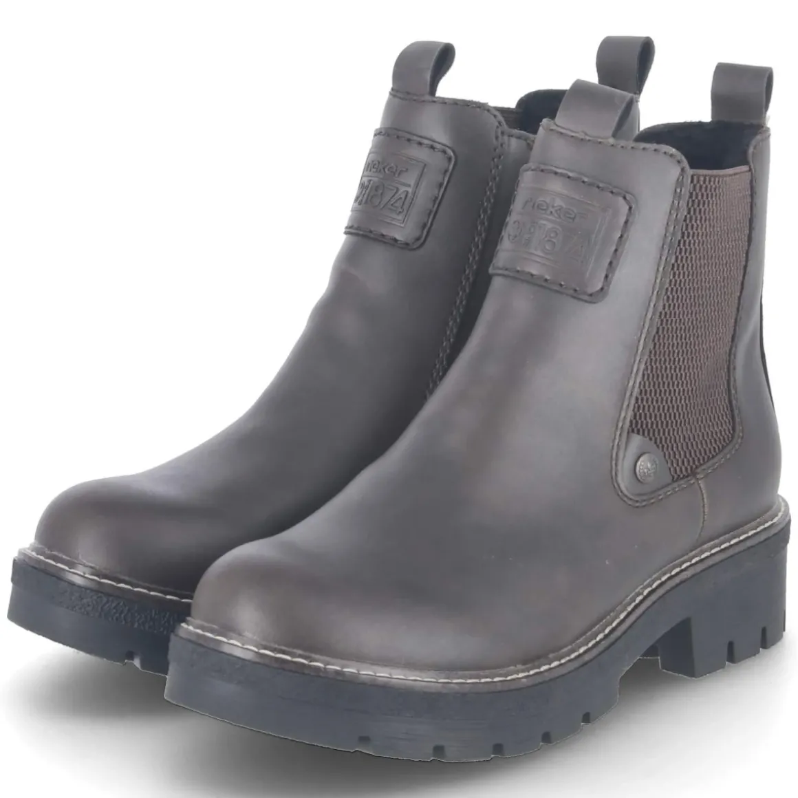 Dieser Chelseaboot von Rieker verbindet zeitloses Design mit Komfortqualitäten für kühle Tage. Die warme Fütterung sorgt für behagliches Tragegefühl, während der 5 cm hohe Blockabsatz stabilen Halt und eine angenehme Höhe bietet. Das pflegeleichte Obermaterial aus Kunstleder zeigt sich in einem vielseitigen Braun mit dunkelbraunen Akzenten. Elastikeinsätze am Schaft und der praktische Reißverschluss erleichtern den Einstieg, unterstützt von zwei Anziehlaschen. Die rutschfeste, flexible Profilsohle gibt Sicherheit auf wechselnden Untergründen, die runde Spitze und das komfortable Wechselfußbett mit textiler Decksohle erhöhen den Alltagskomfort. Der verstärkte Fersenbereich optimiert die Formstabilität und Langlebigkeit. Modetipp: Zu Straight-Leg-Jeans, Feinstrickrolli und einem wolligen Oversize-Mantel entsteht ein moderner City-Look.