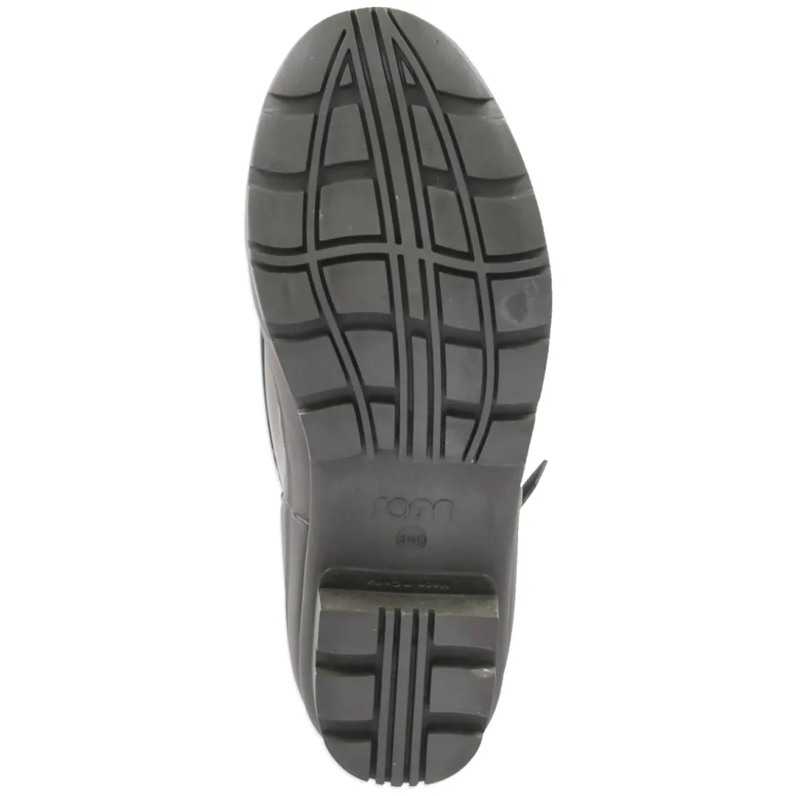 Der Damen-Gummistiefel von Rajn in sattem Grün verbindet Funktion und Style: Wasserabweisendes Obermaterial aus Gummi, runde Schuhspitze und ein 3 cm hoher Blockabsatz sorgen für Schutz und komfortablen Stand bei nassem Wetter. Die modern designte Synthetik-Anmutung trifft auf praktikable Details wie den unkomplizierten Einstieg und den Varioschaft, der mithilfe eines hinten platzierten Riemens die Schaftweite um bis zu 11 cm erweitert. Innen verwöhnt eine textile Decksohle, das gepolsterte, komfortable Wechselfußbett kann bei Bedarf herausgenommen werden. Ein verstärkter Fußrahmen und die Ferse mit orangem Neonstreifen geben Halt und einen markanten Look, während die flexible, rutschhemmende Profilsohle sicheren Grip bietet. Fällt normal aus. Modetipp: Zu Parka und Strickkleid entsteht ein lässiger City-Outdoor-Mix.